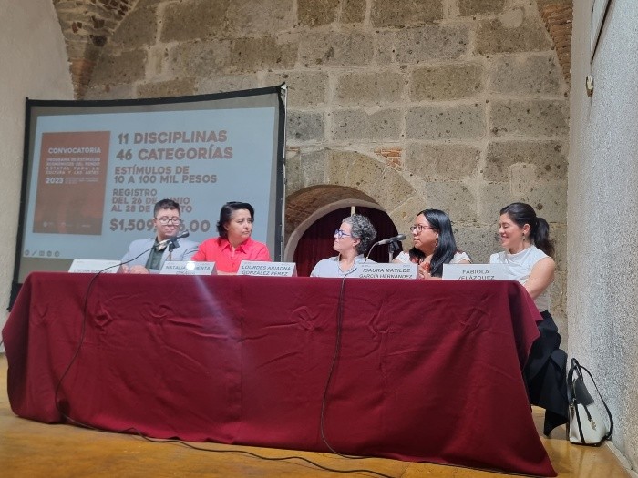 Por su parte Lucian Baruqui, secretario ejecutivo del organismo, habló de la convocatoria FECA 2023, la cual apoya a artistas, creadores, investigadores y gestores culturales residentes del Estado de Jalisco con estímulos de 10 mil hasta 100 mil pesos.