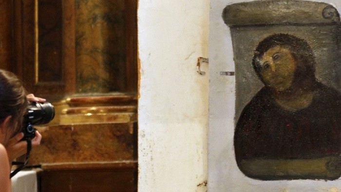 Así comenzaba un post, con fecha del 7 de agosto de 2012, del blog dedicado a la cultura del pequeño pueblo español de Borja, de apenas 5.000 habitantes.La publicación explicaba que un inventario de arte religioso en la región encontró el fresco Ecce Homo, obra del pintor Elías García Martínez, en las paredes del Santuario de la Misericordia en Borja en mal estado de conservación."Pero, para nuestro asombro, podemos ver que, en el breve espacio transcurrido desde entonces, se ha producido 'un arreglo', cuyo resultado es lo que se ofrece en esta imagen"."Desconocemos las circunstancias en las que se produjo el arreglo".No pasó mucho tiempo para que fueran reveladas.Una feligresa del santuario de Borja de nombre Cecilia Giménez, entonces de 81 años, fue identificada como la autora de la torpe restauración.Armada de "buena fe", trató de resolver los problemas de conservación de la pintura aún sin dominar las técnicas necesarias.El resto es historia: un tsunami de burlas barrió las redes sociales, alimentó los noticieros, los programas de humor y los círculos de conversación de todo el mundo en las siguientes semanas y reverberó con tal fuerza que transformaría la obra de doña Cecilia en uno de los memes más grandes de la historia en internet.Ante el repentino interés de un nuevo público por el arte sacro local, el párroco del santuario pidió incluso al alcalde que tapara el cuadro y así evitar bromas. La solicitud fue denegada.La anciana, bajo amenaza de acciones legales por lo que fue catalogado como un "acto de vandalismo", cayó en depresión. Lloró durante varios días.Pronto, sin embargo, recuperó el ánimo. Se dio cuenta de que la situación estaba dando la vuelta: poco a poco, el ridículo dio paso al aprecio, a menudo irónico, en un fenómeno típico de la cultura web.En poco tiempo, la imagen se convirtió en una serie de productos de mercadería, como llaveros, camisetas e imanes de nevera, e incluso en una ópera compuesta por el estadounidense Andrew Flack en 2015.Diez años después, Borja celebra sin vergüenza el Ecce Homo transformado por las manos de la española, que ahora vive en una residencia de ancianos, con mala salud a los 91 años."Su situación ha empeorado mucho, pero aún es consciente del fenómeno y vive aquí en Borja en una residencia del gobierno de Aragón. Está junto a su hijo, que también tiene un grave problema de salud", le dijo a BBC Brasil el actual alcalde del municipio español, Eduardo Arilla Pablo.José Antonio tiene una lesión cerebral y vive en silla de ruedas. El otro hijo de doña Cecilia, Jesusín, murió a los 20 años a causa de una rara enfermedad muscular.La mujer dijo en una reciente entrevista con la TV pública de Aragón que, si pudiera, "volvería a intentar restaurar el Ecce Homo". A un diario del País Vasco le dijo que siempre le gustó pintar y tiene buenos recuerdos de la restauración porque "lo hizo con amor".El alcalde de Borja indica que el 10 de septiembre habrá "un acto de reconocimiento a Cecilia Giménez y Elías García Martínez" que será retransmitido en directo por YouTube.Es también un reconocimiento del gran impacto causado en esta pequeña localidad situada a 60 km de Zaragoza y parte de la comunidad autónoma española de Aragón."En materia de turismo, somos un producto mundial. Recibimos visitantes de 110 países de todo el mundo", dice Arilla.En el primer año después de que surgiera el caso, hubo una explosión en el número de turistas, con 40.000 visitantes anuales a Borja."Ahora se ha estabilizado. Pero trabajamos para que esa cadena nunca se rompa", señala el alcalde.Ahora, el flujo es de entre 10.000 y 11.000 visitantes anuales que presencian en vivo lo que se ha hecho famoso en la red."Como institución no podemos permitir que pasen estas cosas", reconoce el alcalde."Tenemos un gran patrimonio monumental y artístico y estamos comprometidos a restaurarlo. Lo que pasó fue un error. Pero también es cierto que, una vez que pasó esto, es un fenómeno pop, un ícono pop", apunta."Con todo respeto a la pintura original de Elías García, la obra más importante se define ahora a la manera de Cecilia Giménez".El fresco de García Martínez (1858-1934) es una reproducción de otros Ecce Homo ("He aquí el hombre" en latín) del pasado.Es un tema común en el arte europeo entre los siglos XV y XVII, cuyo título alude a la frase de Poncio Pilatos cuando presenta a Jesucristo torturado ante la multitud.García Martínez fue profesor de la Escuela de Bellas Artes de Zaragoza y también patriarca de una familia de artistas de la que destacaba su hijo Honorio García Condoy, escultor de vanguardia.La familia veraneaba en la comarca de Borja, por lo que García Martínez realizó el fresco del interior del santuario en 1930.El diario español El País calificó el cuadro original de "poco valor artístico". La obra no fue catalogada por los Órganos Culturales de Aragón.¿Fue arte lo que hizo la restauradora? "Cecilia Giménez creó algo totalmente diferente, con mucho más impacto que la pintura original", dice Nathalia Lavigne, curadora e investigadora en cultura digital."Pero todo ahí es contexto, el meme es contexto. La imagen penetró en la cultura visual contemporánea porque tenía todas las características de un meme: algo casual, amateur y un poco anárquico. Nunca fue su intención hacer lo que pasó".El caso del Ecce Homo rehecho, según Lavigne, se relaciona con una pregunta contemporánea: no tanto sobre qué es el arte sino dónde está el arte."En ese contexto en el que ella hizo la restauración, ciertamente no era arte. Pero se puede ver de esta manera, pensando en la idea de longevidad de la circulación de la imagen, que va a determinar la importancia de la vida del objeto".El cineasta español Álex de la Iglesia, director de películas como "El bar" y "El día de la bestia", declaró en Twitter que la imagen es un "ícono de nuestra forma de ver el