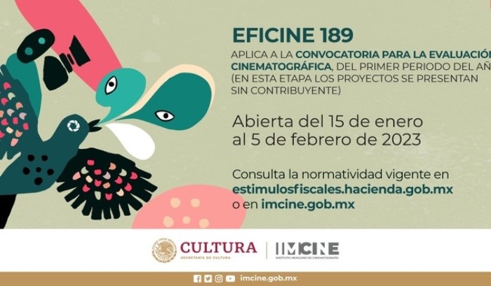 La Secretaría de Cultura federal, a través del Instituto Mexicano de Cinematografía (Imcine), informó que el registro para el primer periodo de 2023 para acceder al Estímulo Fiscal a Proyectos de Inversión para la Producción y Distribución Cinematográfica Nacional (Eficine 189) está abierto a partir de este domingo 15 de enero y hasta el 5 de febrero próximo, a las 18:00 horas tiempo del centro, para la evaluación cinematográfica de los proyectos que se inscriban.En esta etapa, los proyectos aplican sin empresas contribuyentes aportantes; posteriormente, aquellos que resulten autorizados para ser susceptibles de recibir el estímulo podrán aplicar, en esa etapa posterior, junto con una o más empresas contribuyentes, a la evaluación fiscal, lo que se realizará del 7 al 30 de abril de este año.Eficine 189 es un estímulo que tiene como objetivo apoyar la producción o postproducción de largometrajes de ficción, animación y documental, así como la distribución y exhibición de películas mexicanas. Opera desde 2007 a través de un Comité Interinstitucional en el que participan la Secretaría de Hacienda y Crédito Público (SHCP), el Servicio de Administración Tributaria (SAT), la Secretaría de Cultura federal y el Imcine.Año con año, el Eficine abre dos periodos, cada uno con dos etapas de evaluación: El primero es de ‘Evaluación cinematográfica’: en la que un Consejo Evaluador conformado por personas reconocidas de la comunidad audiovisual de México, insaculadas (sorteadas) ante notario público, analiza los méritos artísticos, culturales y cinematográficos, además de la viabilidad de los proyectos que aplican. Es importante mencionar que el Imcine organiza el proceso, sin voz ni voto, y no interviene en los resultados de la evaluación.El segundo periodo es de ‘Evaluación fiscal’: Los proyectos autorizados en la primera etapa se pueden presentar tanto en ese mismo periodo del año como en el subsecuente, para ser evaluados en lo fiscal junto con las empresas que les aportarán hasta un 10 por ciento de su Impuesto Sobre la Renta (ISR). La SHCP y el SAT analizan si las empresas y las casas productoras que aplican cumplen con la reglamentación establecida por la ley para poder tanto otorgar (en el caso de las empresas), como recibir (en el caso de las casas productoras) el estímulo fiscal.El Eficine cuenta con un monto disponible de 650 millones de pesos anuales para proyectos de producción y 50 millones para proyectos de distribución cinematográfica, distribuidos en los dos periodos del año. Cabe destacar que a través de este estímulo se han apoyado ya 341 proyectos cinematográficos desde 2019.Cualquier duda puede ser consultada llamando en horas hábiles a los teléfonos: 55 54485300 ext. 053, 55 51487740, 55 36881604 o al 55 36881348. También se puede escribir a las direcciones de correo: eficine_st@hacienda.gob.mx, eficineproduccion@imcine.gob.mx o eficinedistribucion@imcine.gob.mx.Las reglas, lineamientos y requisitos para el registro de proyectos al primer periodo de Eficine 189 están disponibles para su consulta en la página web www.estimulosfiscales.hacienda.gob.mx y en el portal www.imcine.gob.mx.MF