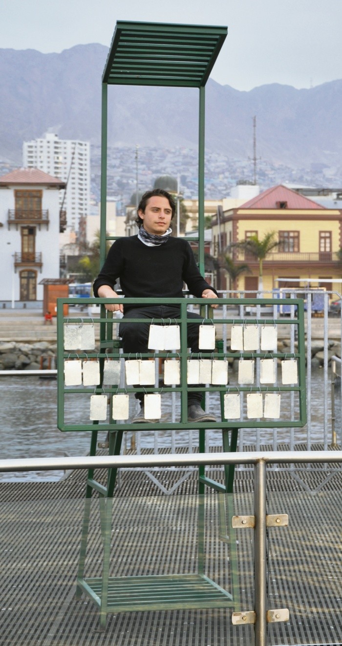 El artista tapatío Juan Carlos Guerrerosantos participó en la octava edición del Festival de Arte Contemporáneo, realizado en Antofagasta (Chile). Para su décima edición el festival cambiará su nombre a Bienal del Desierto.El festival es en el formato de residencia, organizada por Saco (proyecto de Dagmara Wyskiel y Christian Núñez). Espacio Isla es la casa donde Guerrerosantos estuvo en residencia, junto con otros seis artistas internacionales, elegidos entre más de 270 solicitudes.Fue en la Galería Curro cuando se enteró de la existencia de esta residencia que “todos los años tiene un tema: el tema del año en que participé fue ‘Destino’. Apliqué porque tenía una pieza que hice, subí unas sillas al cerro, tomamos unas fotos. Están un poco basadas en la canción ‘All Along the Watchtower’ (escrita por Bob Dylan y popularizada por Jimi Hendrix). Tiene una crítica muy fuerte social de la gente que toma los recursos de otros, se los gastan y se aprovechan. Nace la cuestión de hacer la pregunta de quiénes somos para juzgar. Son sillas de jueces de tenis. ¿Por qué siempre está arriba, no en el mismo nivel?”La obra lleva el título de “Círculo compuesto”, e incluye cinco sillas. En Chile se colocó en un muelle histórico en Antofagasta: cuatro marcando un círculo, como una brújula, con la quinta saliendo un poco. “Es la quinta silla que ve hacia el horizonte: ese es el destino. Mientras haya vida, hay destino”.Fueron 15 días los de la residencia: “Fue muy bonito. Los artistas con los que trabajé, con quienes compartí residencia, me enseñaron muchísimo”, comentó el artista. Juan Carlos es el segundo artista más joven en estar en la residencia en los ocho años de realizarse, con 25 años de edad; además es el primer mexicano en ser seleccionado.Los otros artistas con los que estuvo en residencia fueron Stephanie Williams (Costa Rica), Marcos Temoche (Venezuela), Guillermo Vezzosi (Argentina), Anna Uścińska de Rojas (Polonia), Patricia Teles (Brasil) y Yuga Hatta (Japón). Algo que le reconocieron fue la escuela que tiene, con un perfil autodidacta. De su formación, platicó: “Trabajé con Octavio Abúndez, a quien le debo muchísimo”. Tanto en la residencia como en su formación, el intercambio y contacto con otros artistas estimulan el aprendizaje. Sobre su trabajo con Abúndez, agregó: “De ahí también aprendí de Alejandro Almanza, Gabriel Rico y Luis Alfonso Villalobos, con quienes compartí taller”. Igualmente, su formación universitaria en arquitectura ha apoyado su visión del arte: “El Iteso me ha dejado muchísimo”.En ese sentido, platicó: “Me encanta el estudio del espacio, la fenomenología y el contexto. Creo que no se puede hacer una obra sin saber qué hay alrededor de ella. Me encanta la materialidad, los colores, cuando la luz por alguna forma pega en una ventana con un vitral y cae en el espacio. Es un diálogo. Como al hacer una instalación. Me gusta mucho trabajar en el espacio público, eso me lo dio la arquitectura. Me gusta también los homenajes y las reinterpretaciones: hacer homenaje a quienes estuvieron antes de uno”.La experiencia en Chile fue también docente, pues impartió clases durante su estancia. El acercamiento con los más jóvenes sucedió también el día de la inauguración, pues hubo estudiantes de niveles medios: “Siempre iban conmigo. Creo que me veían más de su edad, más chavo que los otros artistas. Llegaban con más confianza a querer platicar”. Entre los próximos proyectos de Juan Carlos Guerrerosantos está uno en la Ciudad de México; para inicios de 2020 estará en Perú, exponiendo por primera vez de manera individual.