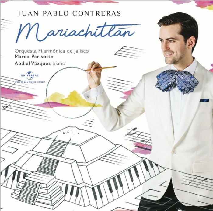 Pocos meses después del lanzamiento del álbum “Mariachitlán”, Juan Pablo Contreras fue nominado al Grammy Latinos (a celebrarse el 14 de noviembre en Las Vegas) en la categoría de Mejor arreglo, por la composición del tema que da nombre a la placa. El disco incluye las composiciones “El laberinto de la soledad”, “Mariachitlán” y “La pirámide del Sol”, todas interpretadas por la Orquesta Filarmónica de Jalisco (OFJ) con batuta del entonces director titular, Marco Parisotto. Como solista al piano está Abdiel Vázquez.El músico tapatío comentó su reacción: “Increíble, no me esperaba la nominación, para nada. No pensé que llegaría a mi carrera en esta etapa. Es un privilegio y un honor. Estoy contento de que sea con ‘Mariachitlán’ en la categoría de mejor arreglo (mejor orquestación en mi caso, al hacer la composición y el arreglo)”. Marco Parisotto comentó sobre la nominación: “Me siento muy complacido con este resultado. Juan Pablo ha trabajo muy duro para estar donde está, y haber sido parte de todo este esfuerzo que ahora desemboca en esta nominación me llena de gusto y sé que lo motivará a seguir esta espiral ascendente en su carrera como compositor”.Actualmente Contreras está en México para promocionar la pieza: “He estado en una gira nacional con siete orquestas que la están interpretando, son once conciertos. La gira termina el 17 de octubre en el Teatro Degollado con la Orquesta Filarmónica de Jalisco; vamos a presentar el disco completo. Estoy sorprendido y agradecido, también por lo que significa: me interesa poner en alto el nombre de México en música clásica. Son premios que reciben músicos de muchos géneros, rock o pop. Es gratificante ver que ‘Mariachitlán’ y la música clásica pueden estar en cualquier playlist, en cualquier plataforma y que la gente la escuche. Es un escaparate más visible, hace falta eso: que sepan que la música clásica puede ser más digerible, más directa para el público. Mi misión es romper esa idea de que tiene que ser difícil: el disco es festivo y celebra nuestra cultura”.Juan Pablo recordó cómo comenzó su vínculo con la OFJ: “Tengo una relación colaborativa con la orquesta desde el 2013, cuando tocaron ‘El laberinto de la soledad’. Desde entonces han tocado mis obras. En 2016, cuando lanzaron el Concurso Nacional de Composición, escribí ‘Mariachitlán’ como un homenaje a Jalisco”.Después llegó la propuesta de grabar un disco. Para ello recaudó fondos con tres becas: Proyecta Producciones de la Secretaría de Cultura de Jalisco, del Fonca y un premio de la Universidad del Sur de California: “Con esos apoyos se hizo la producción. Grabamos el disco, una vez terminado se lo presentamos a Universal Music México. La gran sorpresa fue que no sólo aceptaron grabar el disco: también me firmaron como artista en la disquera. Soy el primer artista clásico de Universal Music México; es una maravilla, haremos más producciones. Es un triunfo para el ámbito de la música clásica en nuestro país, que se vea que es actual y de relevancia, puede tener el mismo escaparate de cualquier otro género”.Las tres obras del álbum tocan temas nacionales. Para ‘El laberinto de la soledad’ se inspiró en el libro homónimo de Octavio Paz, donde reflexiona sobre la mexicanidad: “Me interesa mucho proponer un nuevo sonido de la música ed nuestro país: lo que tiene ese libro es la pregunta: ¿Qué significa ser mexicano? Me interesó mucho con mi música responder qué significa ser un compositor nacional en el siglo XXI. Combina elementos de la música folclórica, de mariachi, de banda, recuerdos de la música indígena, todo mezclado con la música clásica. Somos herederos de un gran pasado indígena y español, y a la vez somos únicos”.La composición ‘Pirámide del Sol’ se vuelca a nuestra época prehispánica: “En mi investigación encontré que Teotihuacán fue el primer lugar donde se practicó juego de pelota: es una narrativa sonora del juego, se oye el juego que se practicaba al frente de la pirámide, hay una ofrenda, el sacrificio, termina con una danza emplumada. La inspiración nació de imaginarse al piano en el centro rodeado de la orquesta, tal cual como la arquitectura en Teotihuacán, con la pirámide en el centro rodeada de la civilización”.El pianista Abdiel Vázquez, solista en la obra, estudió en la Manhattan School of Music, donde Contreras hizo su maestría: “Lo conocí y me propuso escribirle un concierto de piano. Gané una beca del Fonca de Jóvenes Creadores. La estrenamos en Bellas Artes”. Con la selección de las tres obras, Contreras quiso que “el disco fuera un viaje a través de la historia de México: el prehispánico con ‘Pirámide del Sol’, el que busca construirse como nación con ‘El laberinto de la soledad’ y el moderno y festivo con ‘Mariachitlán’. Fue una coincidencia que tuviera estas tres obras, lo interesante ha sido el reto de traducir a música a qué suena México y cómo ha evolucionado nuestro país con la historia musical”.Marco Parisotto comentó sobre el vínculo con el compositor mexicano: “Tenía el deseo de programar y promover el quehacer de compositores del Estado de Jalisco. En mi búsqueda, el ingeniero Arturo Gómez Poulat me mostró una partitura de Juan Pablo (‘El laberinto de la soledad’). La partitura me pareció una obra excelente y que me hizo descubrir a un joven compositor con gran talento. De ahí surgió la idea de juntarnos y desarrollar proyectos”.Marco fue jurado en el concurso de composición en el que Contreras inscribió “Mariachitlán”. Del álbum, comentó: “Grabar un disco con obra integral (orquestal) de Juan Pablo, fue el siguiente paso en esta fructífera colaboración. Este trabajo fue una experiencia maravillosa ya que hubo en todo momento un gran entusiasmo y profesionalismo de todas las partes involucradas. Juan Pablo estu