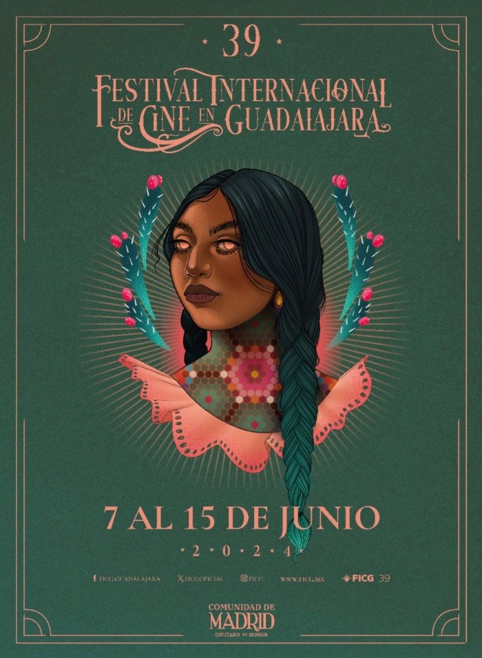 El Festival Internacional de Cine en Guadalajara (FICG) contará con emocionantes novedades para su edición número 39. Este año, el festival tendrá como Invitado de Honor a la Comunidad de Madrid, destacando así la diversidad cultural y cinematográfica que caracteriza a este evento de renombre internacional.Además, se ha revelado el cartel oficial del FICG 39, diseñado por la artista gráfica y tatuadora Tata Muciño.La Comunidad de Madrid será parte del FICG 39 a través de una amplia variedad de eventos. Esta colaboración promete enriquecer la experiencia del festival y brindar a los asistentes una visión única del cine español y su conexión con el panorama global.El FICG 39 está programado para llevarse a cabo del 7 al 15 de junio de 2024 en el Área Metropolitana de Guadalajara. Aunque el programa completo aún no ha sido anunciado, se espera que en los próximos días se divulguen más detalles sobre invitados especiales, proyecciones destacadas y las actividades que conformarán el evento.Por otro lado, el cartel oficial creado por Tata Muciño está inspirado en los rasgos de la mujer mexicana. Presenta a una mujer rodeada de nopales con flores sobre un fondo verde.Las sedes del festival abarcarán diversos espacios en el Área Metropolitana de Guadalajara. La Cineteca FICG, ubicada en el Conjunto Santander de Artes Escénicas, será el núcleo principal del festival. Además, habrá actividades en el Cineforo de la Universidad de Guadalajara, el Auditorio Telmex, el Centro cultural El Refugio, la Biblioteca Pública del Estado "Juan José Arreola", así como otros espacios emblemáticos de la ciudad.Este evento reúne año con año a cineastas, artistas, críticos y amantes del cine de todo el mundo para celebrar la creatividad y la diversidad en la industria cinematográfica.Esta nueva edición del FICG promete ser una gran experiencia al ofrecer la oportunidad de descubrir nuevos filmes y cortometrajes que pueden dejar una huella perdurable en el panorama cinematográfico internacional.SV