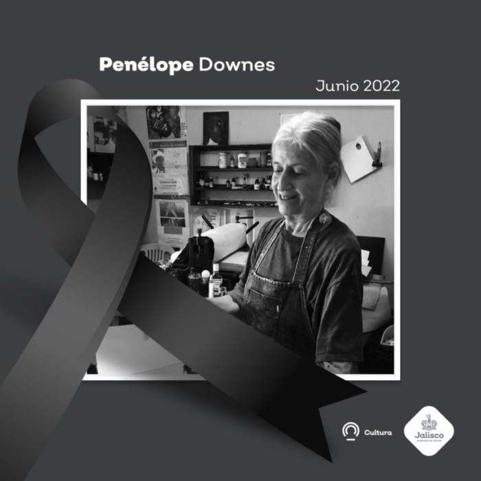 A través de redes sociales, hoy por la mañana se dio a conocer que la pintora, grabadora, diseñadora de escenografías y maestra de historia del arte Penélope Downes (1945) falleció a las 7:00 am en Guadalajara; así lo publicó el grabador y ex esposo de la artista, Cornelio García Ramírez con el mensaje: “Hoy has trascendido, hoy ya eres inmortal. Gracias por todo y por tanto, compañera de mi juventud, madre de mi hija mayor, extraordinario ser humano, artista excepcional”. La noticia fue confirmada por la Secretaría de Cultura de Jalisco, en su perfil de Facebook. La artista plástica de origen londinense radicó en Guadalajara por casi 40 años; en su obra destacaron sus trabajos de serigrafía y grabado, donde predominaron los escenarios de paisajes que tanto amó desde que vivió en África durante su infancia.Penélope nació en Inglaterra después de la Segunda Guerra Mundial; ella y su familia se mudaron a Kenia, ya que sus papás trabajaban para el gobierno londinense en dicha nación. A los 10 años regresó a Inglaterra donde estudió en un convento. Por algún tiempo Penélope quiso estudiar veterinaria, pero a los 15 años se inclinó por diversas disciplinas artísticas: “Se me olvidaron los animales, y llevo toda mi vida dedicada al arte”.Desde la década de los 80 laboró con la bailarina y coreógrafa Paloma Martínez, con quien creó una sinergia entre la danza y la plástica.Su obra destacó en exposiciones como la titulada “Pintoras en Guadalajara”, la cual tuvo lugar en 1984, en el Salón las Flores del Hotel Fiesta Americana. La muestra reunió el trabajo de algunas de las pintoras (originarias o residentes temporales en la ciudad) que se han destacado por su labor. En 2013, la gráfica de Penélope Downes quedó evidencia en 24 obras de serigrafía y grabado en la muestra “Vueltas del tiempo”, la cual tuvo por sede la Galería Ajolote.Además, la Colección MUSA está conformada por obras de artistas nacionales y extranjeros, entre ellos: José Clemente Orozco, Martha Pacheco, Penélope Downes, José Fors, entre varios más.Otras muestras relevantes en la trayectoria de Penélope Downes fueron: “Manifiestos estéticos”, “La Ronda Nocturna: Euforia artística en la Guadalajara de los 90”, “Metamorfosis”, “Creadoras Contemporáneas de Jalisco”, “Mujeres en la gráfica”, entre otras. Cabe señalar que en diciembre del año pasado fue reconocida como creadora emérita del Programa de Estímulo a la Creación y Desarrollo Artístico (PECDA Jalisco) en la edición 2021-2022.AC