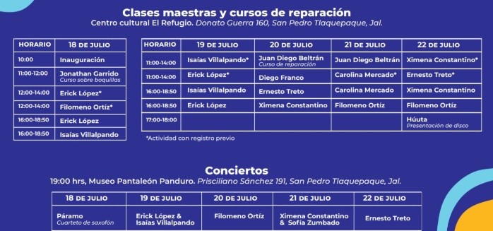 El Gobierno Municipal de San Pedro Tlaquepaque, a través de su Dirección de Cultura, promueve en las y los tlaquepaquenses la música instrumental del saxofón, gracias al Primer Encuentro Nacional de Saxofonistas de la Universidad de Guadalajara (UdeG), que se llevará acabo con una serie de actividades culturales gratuitas hasta el día 22 de julio del presente año.Durante la inauguración, la regidora presidenta de la Comisión Edilicia de Promoción Cultural, Anabel Ávila Martínez, dijo que, con este primer encuentro Tlaquepaque recordará que la música es una herramienta para desarrollar la creatividad del ser humano y agregó que es un vehículo para la paz y armonía en las comunidades.Estableció la funcionaria que “es un encuentro que pone énfasis en las actividades culturales y de tipo formativo con los conciertos a cargo de los más grandes saxofonistas del país, y además, ofrece una posibilidad de negocios, a través de mantenimientos y preparación de saxofones”.Resaltó la regidora que con estas actividades se combina y equilibra lo académico y formativo con lo cultural y el mundo de los negocios. “Este tipo de acciones refuerza la estrategia principal de nuestro Gobierno y nos permite seguir garantizando el derecho a la cultura de nuestras y nuestros habitantes”.Por su parte, el saxofonista Diego Humberto León Jiménez, agradeció el apoyo brindado por parte del gobierno municipal, ya que es la materialización de un sueño que se realizó después de varios meses de trabajo; dijo que “es un proyecto que involucra a las y los saxofonistas de Jalisco, y es un trabajo colaborativo entre empresas e instituciones, estoy convencido que como gestoras y gestores culturales tenemos un compromiso social y una obligación, por ello, ofrecemos este encuentro gratuito con actividades que sean accesible para todas y todos”.Señaló que se impartirán diversas actividades como: clases magistrales, cursos de reparación de instrumentos y conciertos de música en vivo, con la finalidad de formar públicos con opciones de formación musical y cultural; “necesitamos que las personas conozcan nuestro trabajo artístico musical y lo valoren y respeten”, refirió el músico.Las clases magistrales y cursos de reparación del Primer Encuentro Nacional de Saxofonista se llevan a cabo en un horario de 11:00 a 18:00 horas, en el Centro Cultural El Refugio, ubicado en la calle Donato Guerra #160, zona Centro. Igual será para los conciertos en vivo, que darán inicio a las 19:00 horas, en el Museo Pantaleón Panduro, ubicado en la calle Prisciliano Sánchez #191, en la cabecera municipal.FS