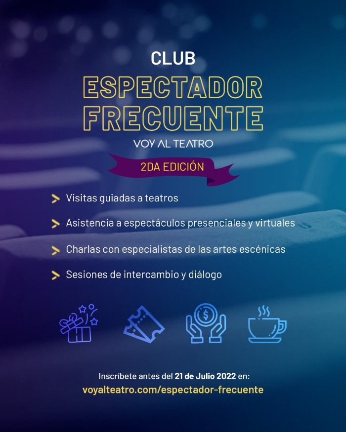 Se abrirá de nueva cuenta el Club Espectador Frecuente este mes de julio, y este año tendrá dos versiones: una edición de Verano que se organiza en coordinación con la Escuela de Artes Jalisco, llamada ‘Club de Espectadores de Teatro’, dentro de las actividades especiales del programa Guadalajara en Verano; y por otro lado, la segunda edición de nuestro Club Espectador Frecuente.El Club Espectador Frecuente de Voy al Teatro ha sido un punto de reunión mensual para todas esas personas que disfrutan de asistir al teatro para poder conversar entre sí y compartir distintas perspectivas sobre los espectáculos vistos acompañados de un buen café y galletas. El año pasado, se llevó a cabo la primera edición del Club, gracias al beneficio del programa Habita La Escena de la Secretaría de Cultura (SC) de Jalisco.Además de haber acudido a puestas en escena presenciales y virtuales, los integrantes hicieron visitas y recorridos guiados por distintos teatros de la ciudad como el Teatro Degollado o el Teatro Alarife, tuvieron charlas con personas dedicadas a la creación escénica como Luis Manuel Aguilar ‘Mosco’ sobre dirección o Andrés David, sobre vestuario; además de haber dialogado con las y los integrantes del programa de ‘Crítica Escénica’ de Voy al Teatro. En este julio 2022 se realizará la segunda edición.Asimismo, el Club de Espectadores de Teatro se instala en la Escuela de Artes Jalisco en conjunto con Voy al Teatro, como un espacio de encuentro para las y los amantes de las artes escénicas durante el verano de 2022.A través de distintas actividades como la visita a teatros y la asistencia a obras presenciales y virtuales se impulsará para que las y los participantes hagan suyo el movimiento escénico de la ciudad, teniendo así significativos encuentros con profesionales de la escena, habitando los espacios escénicos de la zona metropolitana y generando un lugar de gozo e intercambio entre los mismos participantes.Tras esta versión Verano del Club, los participantes podrán continuar formando parte del programa en la edición recurrente si así lo desean. Ahora bien, para inscribirse en esta edición de Club Espectador Frecuente, se requiere enviar un correo electrónico (antes del día 21 de julio) a programas.voyalteatro@gmail.com.AC