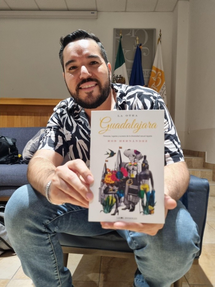 El pasado miércoles 28 de junio en el Colegio de Jalisco, el gestor cultural, Rob Hernández, presentó su libro “La Otra Guadalajara”, un compilado de entrevistas y testimonios que realizó a personalidades importantes de la comunidad LGBT tapatía. Durante el conversatorio, estuvo acompañado por Lorena López, coordinadora de comunicación del colegio; Ignacio Torres, estudiante del doctorado en Ciencias Sociales y Aranza Cano, directora del colectivo Avem México. Durante la charla, Rob compartió que nunca se esperó convertirse en autor de un libro. Hay que destacar que también es el director del documental “Cónyuges”, el cual cuenta la historia de los primeros matrimonios en Jalisco, y también ha sido líder de otros proyectos culturales como “Sarao”, un libro digital de historias de la diversidad escritas y relatadas por personas de la comunidad LGBTIQ+.Recordó que en un inicio, estas historias eran crónicas independientes que reflexionaban y documentaban las historias que pasan en Guadalajara, estos relatos primero se publicaron en una revista digital local llamada Kä Volta y con el paso del tiempo desembocaron en este compilado que ahora se puede adquirir en el Museo Memoria LGBTTTIQ+ en avenida 8 de Julio 76 en el Centro de Guadalajara así como en línea a través de Amazon, Gandhi y Mercado Libre. Resalta que aunque hay muchos ejemplos de líderes que abanderaron los movimientos por la diversidad en la búsqueda de derechos tanto en la Ciudad de México como en Stonewall y otras ciudades, él se preguntaba quiénes eran esos rostros en su ciudad Guadalajara, los que le permitieron gozar de las libertades que tiene hoy como un hombre gay. “Quienes se pelearon por mí, quienes se enfrentaron a las autoridades y quienes han generado los cambios institucionales, han sido las, los y les activistas en Guadalajara, y creo que no les hemos hecho justicia”.Reflexiona que las generaciones que nacieron en la década de los 2000 ya les ha tocado una metrópoli, un país y una sociedad mucho más incluyente, donde es más común pensar en casarse con una pareja del mismo sexo y adoptar, en un contexto donde también se le están haciendo adecuaciones a la ley para las identidades trans. Entonces, el abanico de posibilidades se abre más para las personas diversas, “pero para quienes nacimos antes no, justo cuando estaba haciendo el documental de ‘Cónyuges’, una de las problemáticas era encontrar parejas que se quisieran casar, era el año 2010. Y es que ninguno de los gays que estábamos en ese entonces, teníamos en el imaginario la posibilidad de formar un matrimonio de manera legal”. Así que reitera que él comenzó a desarrollar estas historias como crónicas independientes en el año 2018 como un interés personal, “porque hasta aquella fecha me había tocado conocer sobre todo documentos académicos, tesis y estudios antropológicos que hablaban de la vida gay o que documentaban toda esta parte”, pero su interés era saber que otros libros y literatura había más allá de personalidades como Salvador Novo, Javier Villaurrutia o Elías Nandino, “casi todos ellos pasaban en la Ciudad de México, ¿pero qué hay de Guadalajara?”.Así que le nació hacer algo al respecto y entró a un taller de crónica, uno de sus primeros entrevistados fue el activista Jaime Cobian, impulsor de proyectos como la asociación civil Codise y el Museo Memoria LGBTTTIQ+. De hecho, en el texto también se pueden encontrar otros testimonios como el de Roberto “La Gorda” Espejo, actor y transformista; la drag queen Becky D’Vich, pionera del movimiento cultural en Guadalajara; Gabriel Román “La Pinal”; el activista Jesús Jáuregui y el ilustrador Alfredo Roagui, entre otros. Reconoce Rob que en este texto están en su mayoría los testimonios de hombres gay porque ese es también el contexto en el que se desenvuelve y que claro que faltan más voces de otras personas que se identifican como lesbianas o trans, incluso también podría caber la posibilidad de que en un segundo volumen se aborden estos testimonios. “Mucho de lo que me han dado estas crónicas es conocer y empatizar con las realidades de otras personas, de otras identidades y otras expresiones. Especialmente fue con Candy (Chávez) una amiga, quien es una mujer trans que se dedica al activismo. La entrevisté en el 2018 y a pesar de que yo estaba muy cercano al activismo, no tenía muy claro cómo diferenciar el tema de la expresión, la identidad y la orientación sexual, así es que ella me lo explicó de manera muy sencilla”. Rob Hernández es una persona muy propositiva que siempre está buscando generar proyectos que visibilicen a la comunidad diversa de Jalisco.FS