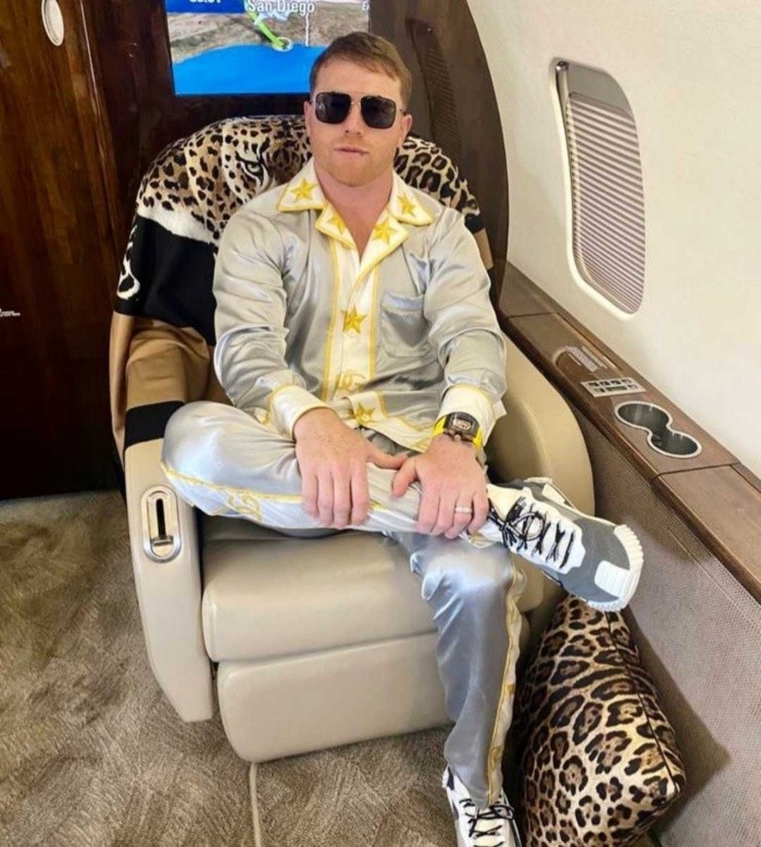 “Canelo” comenzó ganando solo 800 pesos en su primera pelea como profesional, pero desde ese momento y en sus más de 15 años de carrera no ha dejado de llenar sus bolsillos con lo generado por sus grandes peleas, además de que sabe cómo administrar sus finanzas y también es considerado un exitoso empresario.Entre sus peleas, gasolineras y tiendas de conveniencia, “Canelo” también se da sus lujos, entre ellos conocemos su colección de autos deportivos donde destacan algunos de las marcas Lamborghini y Ferrari, ropa de alta gama y hasta caballos de raza fina que llegan a valer hasta 100 mil dólares y que mantiene en su rancho, pero una de las cosas que más llama la atención es su jet privado.El modelo es un Embraer Legacy 500, el cual ronda el precio de los 18.4 millones de dólares según la página compareprivateplanes.com, aunque algunos medios informan que el pugilista mexicano lo compró por unos 20 millones de dólares. En su interior se pueden ver unos lujosos asientos de piel para viajar lo más cómodo posible y disfrutar de alguna película o serie en una de sus varias pantallas instaladas en el interior del jet junto a un sistema de sonido de primer nivel.También podemos encontrar una cocida totalmente equipada para gozar de los mejores platillos que prepare su chef, un baño completo y hasta un dormitorio para descansar profundamente cuando lo necesite. Obviamente no puede faltar un bar con una gran cantidad de las mejores bebidas.