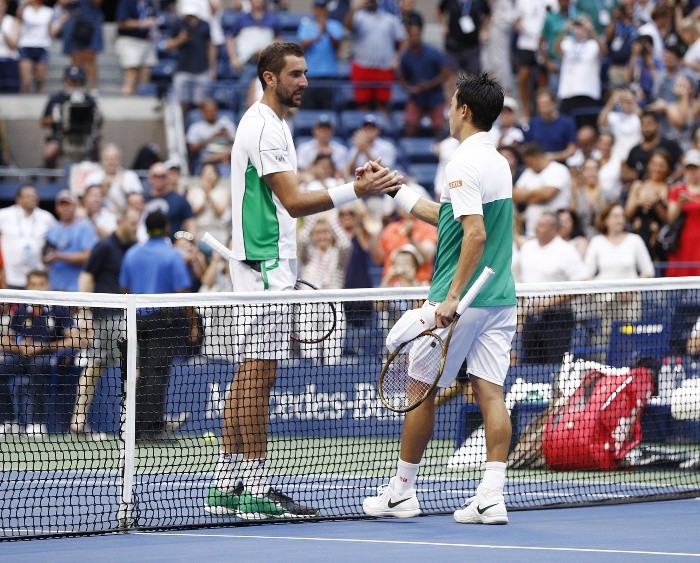 El tenista japonés Kei Nishikori derrotó este miércoles en cinco sets al croata Marin Cilic en cuartos de final del Abierto de Estados Unidos, vengándose de la final que le ganó el europeo en el torneo en 2014.Nishikori, vigésimo primer sembrado del campeonato, remontó un set en contra y acabó ganando en el quinto por 2-6, 6-4, 7-6 (7/5), 4-6, 6-4 en cuatro horas y ocho minutos de juego."Hoy se ha visto un gran tenis", dijo eufórico el japonés, aún sobre la pista central de Flushing Meadows, en Nueva York.El japonés se medirá ahora en la penúltima instancia al ganador del duelo entre el serbio Novak Djokovic (N.6) y el australiano John Millman, que se enfrentan en el último turno de la velada en la Arthur Ashe.Nishikori presenta un balance de seis victorias en siete partidos contra jugadores del Top-10 a lo largo de su trayectoria en el US Open y ya venció al balcánico en semifinales de 2014 pero, desde entonces, no había vuelto a esta instancia, perdiéndose la última edición debido a una lesión en la muñeca.Cilic (N.7) parecía tener dominada la contienda tras adelantarse en el primer set y lograr una ventaja de 4-2 en el segundo pero el japonés nunca bajó los brazos y acabó sumando las dos siguientes mangas.Pero el croata no había dicho su última palabra. Firmó un 6-4 en la cuarta para gritar presente y todo se decidió en la última, con un quiebre del nipón en el décimo y definitivo juego que lo acercó de nuevo a la última instancia del campeonato, cuatro años después.JB