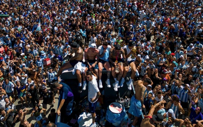 Apoteósico, abrumador, caótico, glorioso. Los términos sobran para definir la jornada que vivió Argentina y en particular Buenos Aires, ciudad que ayer vio el regreso de sus campeones, tras conquistar la Copa del Mundo recién concluida en Qatar.Al menos cuatro millones de personas se volcaron a las calles, avenidas y rutas de acceso a la capital para celebrar el triunfo en la Copa del Mundo. El plan era ofrecer una recepción y desfile al conjunto campeón, pero la idea cambió y al final los seleccionados tuvieron que dar la vuelta triunfal a la capital en helicóptero, debido a la marea de fanáticos que se apoderó de la vía pública. Aunque más que una marea, podría decirse que lo visto ayer fue un tsunami de seguidores de la albiceleste. La caravana terrestre con los campeones del Mundial de Qatar se convirtió en aérea en medio de una confusa organización por la falta de información sobre cuál era su trayecto exacto. Tras salir al mediodía del predio de la Asociación del Futbol Argentino (AFA), en las afueras de Buenos Aires, ayer el autobús descapotable con el plantel recorrió varios kilómetros por una autopista mientras decenas de miles de personas que portaban grandes banderas de Argentina vitoreaban a sus héroes deportivos desde los márgenes de la ruta y edificios cercanos. Más de cuatro horas después y a medida que más y más fanáticos se sumaban a la celebración copando los alrededores de Buenos Aires y varios barrios capitalinos, los jugadores fueron trasladados a un predio donde abordaron varios helicópteros. Después de sobrevolar puntos clave de Buenos Aires donde se habían congregado aficionados, los helicópteros que los trasladaban regresaron a la sede de la AFA, informó la Policía Federal. Con anterioridad, la portavoz del Gobierno, Gabriela Cerruti, manifestó en Twitter que los campeones estaban “sobrevolando todo el recorrido...porque se hizo imposible seguir por tierra ante la explosión de alegría popular”. Los planes iniciales de llegar a la zona del monumento del Obelisco, en el centro de Buenos Aires, se truncaron, reprochó a su vez en Twitter el titular de la Asociación del Futbol Argentino, Claudio “Chiqui” Tapia, quien se trasladaba junto al plantel triunfador en el Mundial de Qatar. “No nos dejan llegar a saludar a toda la gente que estaba en el Obelisco, los mismos organismos de Seguridad que nos escoltaban, no nos permiten avanzar. Mil disculpas en nombre de todos los jugadores Campeones. Una pena”, dijo Tapia. Un paseo efímeroDurante su breve traslado por tierra, el capitán Lionel Messi y el resto del plantel saludaron a la gente mientras portaban la copa que simboliza el tercer título mundial de Argentina y su primero desde 1986. El autobús descapotable era escoltado por varios vehículos de la policía y agentes motorizados. Bajo un sol ardiente, los sonrientes jugadores llevaban colgada del cuello las medallas de campeones y, admirados por el fervor que despertaban, hacían fotos con sus móviles de la multitud que invadía la calzada de la autopista para tener acercarse lo más posible al vehículo. Una marea compacta de gente invadió la ruta, mientras la policía intentaba evitar que se produjeran desmanes, que al final de todas maneras, ocurrieron.El Mundial y el éxito del combinado llevaron alegrías muy necesitadas y ha liberado tensiones en un país que lleva años marcado por los problemas económicos, con una de las tasas de inflación más altas del mundo y donde casi cuatro de cada 10 personas viven en la pobreza. El presidente Alberto Fernández dispuso que el martes fuera feriado nacional para que el país pueda celebrar la victoria. Eso sí, se negó a aparecer en las celebraciones. Al final, fue triunfo para la gente.La pasión desbordada suele encontrarse en la frontera de lo incontrolable. Y ayer Buenos Aires vivió ambos escenarios. Un joven que se encontraba celebrando en el tercer piso de un estacionamiento cayó desde esa altura. El golpe en el cráneo lo mantuvo desde el lunes en estado crítico y fue ayer que las autoridades de esa nación sudamericana confirmaron su fallecimiento.El otra víctima fatal del festejo ocurrió en Bahía Blanca, ciudad de la provincia de Buenos Aires. De acuerdo a la policía se trató de un joven de 22 años que viajaba a toda velocidad en su motocicleta con una bandera de Argentina amarrada a su cuello a modo de capa. En un momento dado, la bandera se atascó con la llanta trasera de la moto y lo ahorcó, provocando que cayera aparatosamente de la motcicleta.Otra víctima fue también un joven que se trepó en un asta bandera, misma que se dobló y lo hizo caer al piso. La fuerza de la caída le costó la vida. El hecho ocurrió en La Matanza, provincia de Buenos Aires.LO QUE SE VIO
