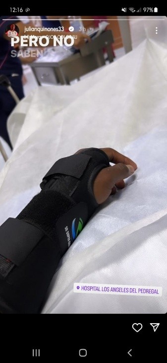 Las noticias de alarma no terminan para Atlas y es que sumado a la lesión sufrida por Mauro Manotas ante América, a las bajas parciales de Julio Furch y Diego Barbosa, ahora se suma Julián Quiñones, quien está por entrar a cirugía este domingo al medio día.El problema del delantero colombiano es en la mano izquierda, por lo que tuvo que ser intervenido quirúrgicamente para corregir un problema óseo que traía desde el partido de la Supercopa de la Liga ante Cruz Azul en Los Ángeles.De manera extraoficial, el club bicampeón informó que la lesión de Julián Quiñones no es grave y a pesar de que entró a quirófano, no sería baja en el siguiente partido del Atlas, el cual será ante Toluca la próxima jornada.GC