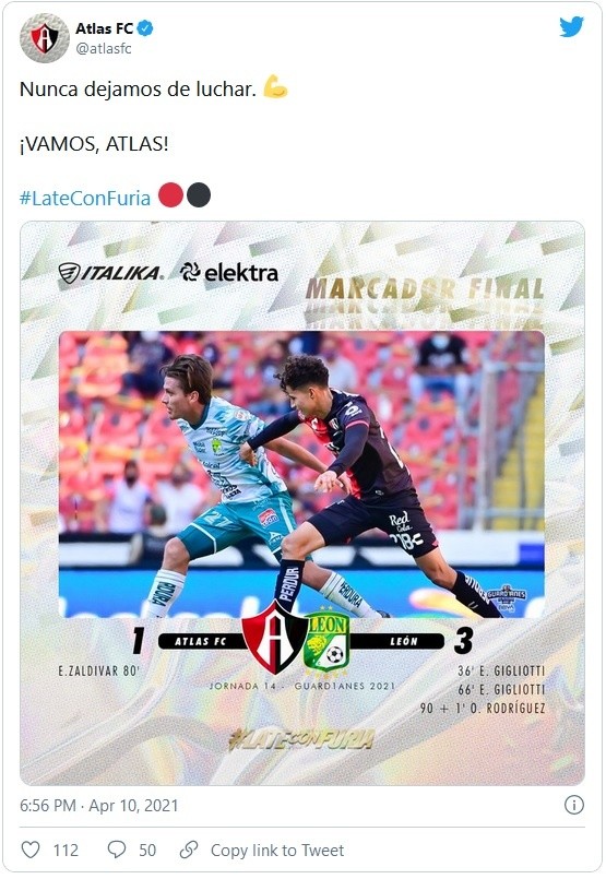 Fueron mejores que el rival, tuvieron más tiempo el balón, pero no tuvieron la contundencia que se necesitaba. Los rojinegros del Atlas desaprovecharon la oportunidad de alejarse del San Luis en la tabla de cocientes, luego de caer por 3-1 ante León en el Estadio Jalisco, en un duelo en donde los puntos en la quema tenían un doble valor.Con este resultado, los Zorros se estancan en un cociente de 1.000 y ven cómo el conjunto de Juárez FC se aleja a 10 puntos en la tabla, dejando el drama con el Atlético San Luis.Los goles del triunfo esmeralda fueron obra de Emmanuel Gigliotti a los minutos 36 y 66, así como de Osvaldo Rodríguez al 91'. Por Atlas descontó con un golazo Édgar Zaldívar al minuto 80, en su partido de reaparición.JM