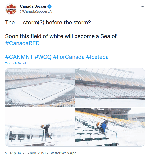"Espero que los mexicanos se diviertan y disfruten del frío y de la nieve. Nosotros los canadienses fuimos hechos para este clima, no sé qué decir de los mexicanos", dijo hace unos días el lateral del Bayern Múnich Alphonso Davies, en referencia al clima que predominará en el partido Canadá vs México, en Edmonton.Este martes 16 de noviembre, México saltará al campo del Commonwealth Stadium para medirse a la Selección de Canadá. Sin embargo, no solo se enfrentará a la mejor generación en años, sino también a las inclemencias del clima, pues los pronósticos meteorológicos prevén temperaturas mínimas entre menos ocho y diez grados durante el partido, que iniciará a las 20:05 horas tiempo del centro del país.Según The Weather Channel, a esa hora, se esperan vientos del noroeste a 15 km/h, una humedad del 82%, y una sensación térmica de 15 grados bajo cero. Antes, se esperan nevadas a partir de las 08:00 horas.Se espera que para el momento en que el árbitro pite el comienzo del juego la nieve haya cesado, sin embargo, las temperaturas bajo cero no serán cualquier cosa para los tricolores, y serán un punto a favor de los canadienses, que llegan motivados tras una marca de tres triunfos y dos empates en los últimos cinco encuentros.México también llegará con la moral golpeada tras el fracaso del viernes pasado en Cincinnati, donde cayó 2-0 ante Estados Unidos, donde además perdió el liderato de la clasificación de la eliminatoria de la Concacaf rumbo al Mundial de Qatar 2022.La Selección de Canadá no califica a la máxima competencia del futbol desde el Mundial de México 1986, por lo que tratará de aprovecharse de todas las circunstancias que para esta cita parecen estar todas a su favor.Una derrota de México contra Canadá, más una victoria de Panamá que recibirá a El Salvador, podría mandar al Tri hasta el cuarto lugar de la tabla.En redes sociales, horas antes de que inicie el partido en Edmonton, el equipo nacional de Canadá publicó unas imágenes en las que se aprecia cómo luce el estadio. Las nevadas lo dejaron pintado blanco.OF