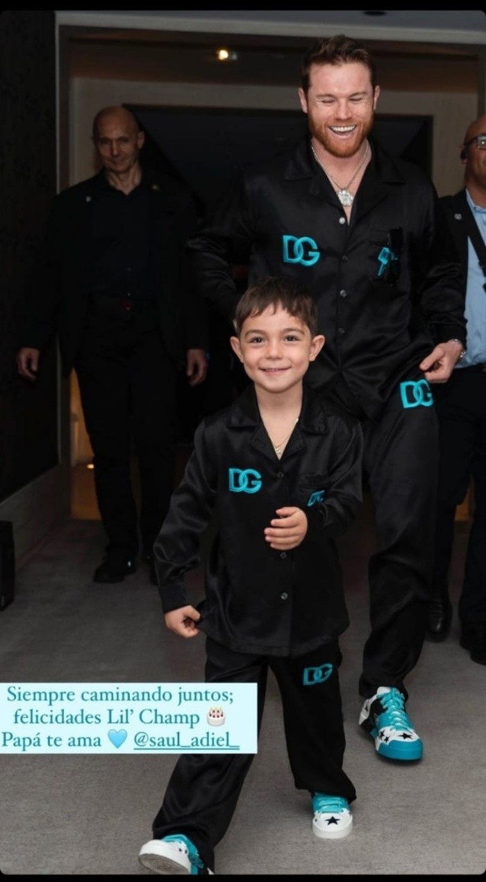 Saúl “Canelo” Álvarez suele celebrar con especial cariño a sus tres hijos, quienes son su mayor adoración. Recientemente, su hijo menor, Saúl Adiel, el único varón, cumplió seis años, y el boxeador no escatimó en expresarle su afecto.El 27 de agosto, "Canelo" compartió una emotiva felicitación en sus historias de Instagram, dirigida a su hijo por su cumpleaños. “Siempre caminando juntos. Felicidades Lil’ Champ, papá te ama”, escribió el boxeador, acompañado de una foto en la que padre e hijo posan sonrientes con atuendos a juego.El festejo de Saúl Adiel llega poco después de otro hito importante en su vida: la finalización de sus estudios preescolares. Canelo también celebró este logro académico con una publicación en Instagram, donde felicitó a su hijo con una foto de él vestido de toga y birrete. La dedicatoria del boxeador reflejó su orgullo por los avances educativos de su hijo.Emily, la hija mayor de Canelo, también participó en las celebraciones, compartiendo una foto de su hermano menor disfrutando de una paleta de hielo en sus historias de Instagram. Emily, quien es fruto de la relación pasada de Álvarez con Karen Beltrán, envió sus buenos deseos con un mensaje tierno para Saúl Adiel. A pesar del cariño que demuestra, "Canelo" enfrenta desafíos significativos en la paternidad debido a su carrera internacional. En una entrevista con el periodista Graham Bensinger, Canelo explicó las dificultades de estar lejos de sus hijos, quienes residen en México mientras él vive en Estados Unidos con su esposa Fernanda Gómez y su hija María Fernanda. El boxeador admitió que, aunque se esfuerza por mantenerse en contacto diario, la distancia y sus compromisos profesionales hacen que sea complicado brindarles la atención que quisiera.SV
