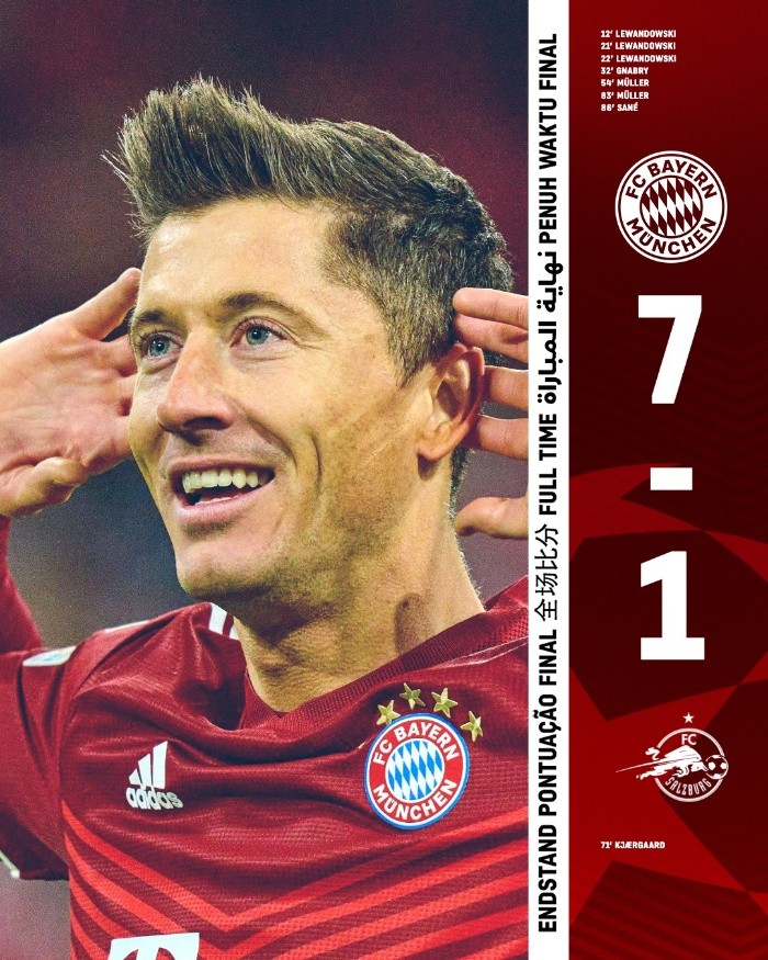 Robert Lewandowski sigue sumando noches mágicas a su carrera y es que con 3 goles en la primera media hora del partido, el polaco encaminó al Bayern Munich a conseguir la clasificación a Cuartos de Final de la Champions League. En los minutos siguientes, el conjunto Bávaro no mostró clemencia alguna y selló su boleto tras la victoria por 7-1 ante el Salzburgo. Tras empatar 1-1 en la Ida, el conjunto alemán llegaba como favorito al partido de vuelta en Munich e hizo buenos los pronósticos al vencer con los tantos de Lewandoswski (12, 21, 23), los dos primeros de penal, Serge Gnabry (31), Thomas Muller (54, 83) y Leroy Sané (86).Con su triplete, el delantero polaco llegó a los doce goles en ocho partidos en la presente Champions, desplazando de la primera plaza de la tabla de realizadores al costamarfileño Sebastien Haller, del Ajax de Amsterdam, que lleva once.Con un global de 8-2, el Bayern Munich exhibió el poderío que tiene en su ofensiva y junto al Liverpool, ya se encuentra en Cuartos de Final de la Champions League a la espera del resto de partidos y del sorteo que defina a su rival. JL