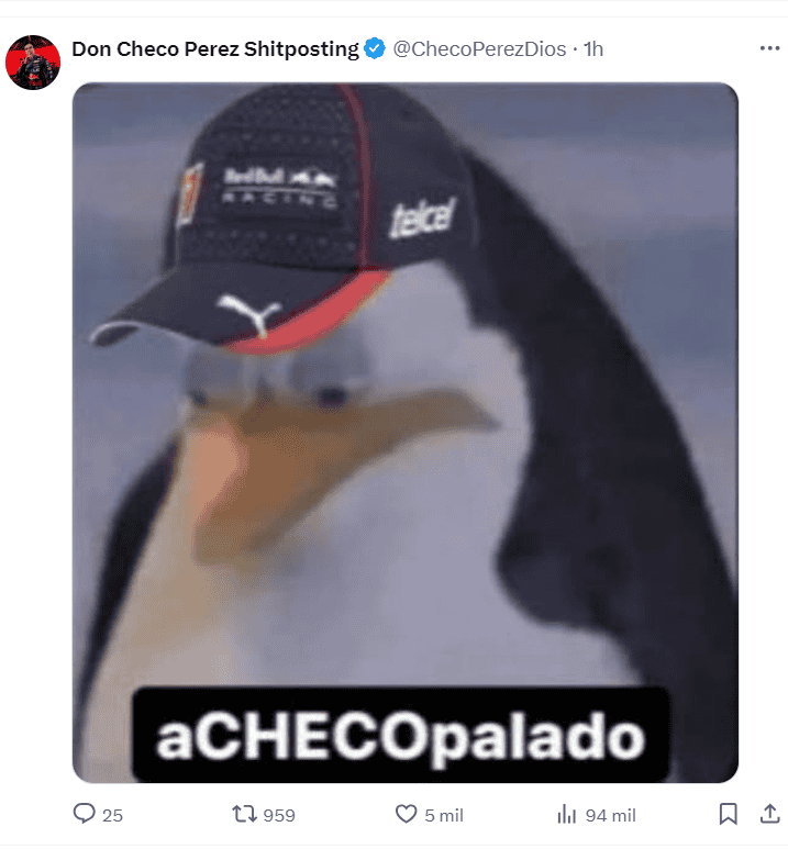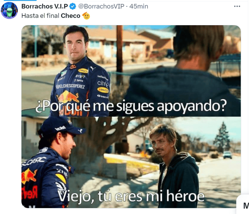 Este domingo fue desastroso para los fans de Sergio “Checo” Pérez, luego de quedar fuera del Gran Premio de Canadá, esto tras de perder el control de su RB20 e impactar sobre el muro de contención.Esta es su segunda salida consecutiva, ya que le sucedió lo mismo en el Gran Premio de Mónaco hace apenas dos semanas.Al momento del impacto, “Checo” iba en el puesto 13 en la vuelta 53, buscando mejorar y meterse en la zona de puntos, no obstante el incidente obligó a entrar a pits y salir del vehículo.La carrera terminó con el triunfo de su compañero en Red Bull, Max Verstappen, en segundo lugar Lando Norris de McLaren y George Russell de Mercedes, en el tercer sitio.Las redes sociales explotaron tras la salida del piloto tapatío, por ello te traemos algunos memes que inundaron internet: *Mantente al día con las noticias, únete a nuestro canal de WhatsApp aquí: https://whatsapp.com/channel/0029VaAf9Pu9hXF1EJ561i03 MV