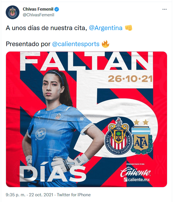 Este martes no será un día cualquiera para Chivas Femenil, pues por primera vez en su historia disputará un juego internacional.Será dentro de la cancha del Estadio Akron en donde las rojiblancas recibirán a la Selección de Argentina en un compromiso que tiene emocionadas a las integrantes del club tapatío."Tenemos muchísima emoción, ese es el sentir del equipo, individual y colectivamente creo que estamos emocionadas por lo que vamos a vivir, porque sabemos que es un partido diferente, algo que no se vive muy seguido, porque es la primera vez que lo hace un club en México".“Sabemos de la responsabilidad que tenemos para representar al club y a la Liga en general, somos conscientes de eso y haremos lo mejor posible”, declaró Jaqueline Rodríguez.Será en punto de las 19:00 horas del martes 26 de octubre cuando las Chivas reciban a la Selección de Argentina en este juego que marcará la historia del club rojiblanco.OF