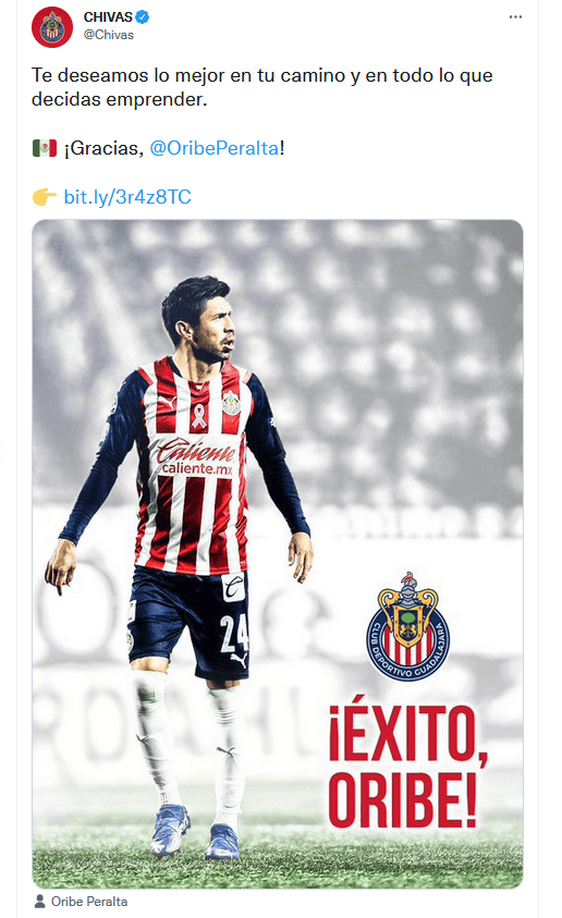 Se terminó de manera oficial la historia de Oribe Peralta en Chivas, pues este día el club anunció la salida del experimentado delantero.Fueron poco más de dos años los que Oribe estuvo en el Guadalajara, ya que arribó al club en junio de 2019 en medio de la polémica, pues llegó procedente ni más ni menos que de las Águilas del América.Durante su estancia en el club Peralta solo pudo marcar un par de goles entre Liga y Copa MX, y estos números le valieron para ser blanco de las críticas debido a que era el jugador mejor pagado de todo el plantel.En este Apertura 2021 Oribe jugó en apenas cinco partidos, y además de que no marcó un solo tanto, apenas disputo poco más del 6% de los minutos disponibles durante la Temporada Regular.OF