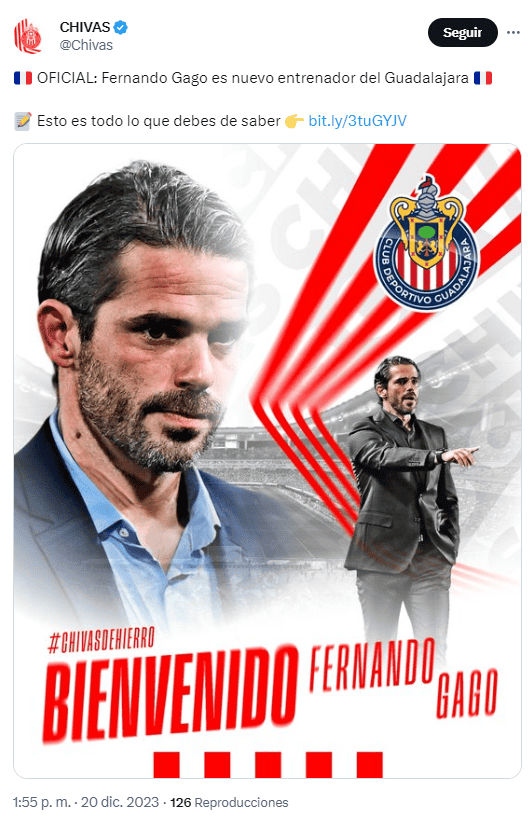 Oficialmente, Fernando Gago asumirá el desafío de dirigir al Club Deportivo Guadalajara en el Clausura 2024.Este día, Chivas por fin anunció de manera oficial que el exentrenador de Racing y exjugador del Real Madrid y Boca Juniors será el encargado de relevar al profe Pauno en el banquillo rojiblanco.Con trayectoria en clubes europeos como Real Madrid, Roma y Valencia, Gago se retiró como futbolista en Vélez Sársfield en 2020. Su experiencia como internacional argentino comprende el haber sido subcampeón del Mundial 2014 y de las Copas América de 2007 y 2015.Como entrenador, Gago dirigió a Aldosivi de Mar del Plata y posteriormente a Racing, logrando imponer un estilo claro y ofensivo que derivaron en un par de títulos: el Trofeo de Campeones 2022 y la Supercopa Internacional 2022, ambos arrebatados Boca Juniors a partido único.La llegada de Gago a Chivas se da en un momento delicado, tras el descalabro en el Apertura 2023, donde fueron eliminados en Cuartos de Final por los Pumas y poco antes la derrota en la Final del Clausura 2023 ante Tigres. El nuevo estratega enfrentará retos como las indisciplinas en el equipo, la gestión de los refuerzos proporcionados por el director deportivo Fernando Hierro, e incluso las revanchas personales, pues su etapa en Racing no terminó de la mejor manera debido a que se quedó a la orilla de campeonatos más notorios y registró malas cuentas en los Clásicos ante Independiente de Avellaneda.*Mantente al día con las noticias, únete a nuestro canal de WhatsAppOF