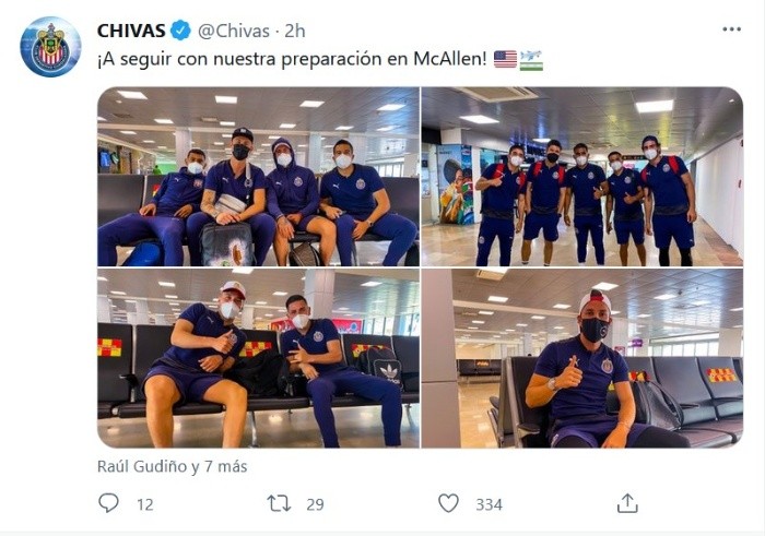 Luego de culminar la práctica de este martes en las instalaciones de Verde Valle, Chivas realizó su viaje a Estados Unidos con 26 futbolistas convocados para realizar la última etapa de pretemporada rumbo al arranque del Torneo Apertura 2021.Ronaldo Cisneros no realizó el viaje a la Unión Americana con el Guadalajara, ya que seguirá bajo observación por parte del cuerpo médico debido al problema cardiaco que le fue detectado justo al inicio de la pretemporada.El Rebaño Sagrado no contará con sus figuras principales, ya que fueron convocados para la Selección Mexicana que estará compitiendo en los Juegos Olímpicos de Tokio y en la Copa Oro de la Concacaf.Entre los futbolistas que hicieron el viaje están los arqueros Raúl Gudiño, Antonio Rodríguez y Miguel Jiménez, así como también los zagueros Alejandro Mayorga, Antonio Briseño, Miguel Ponce, Jesús Sánchez, Hiram Mier, Luis Olivas, Juan Aguayo, Diego Campillo y Gilberto Orozco.Además fueron convocados el capitán rojiblanco, Jesús Molina, y los mediocampistas Isaac Brizuela, Cristian Calderón, Eduardo Torres, Sergio Flores, Carlos Cisneros, Ángel López, Deivoon Magaña, Christian Pinzón y Alejandro Organista.Durante su estancia en Estados Unidos, Chivas jugará tres partidos amistosos donde los delanteros César Huerta, Ángel Zaldívar, Oribe Peralta y Jesús Godínez deberán demostrar quién puede ganarse el puesto titular en el equipo para el torneo Apertura 2021.El Rebaño Sagrado se enfrentará a Tigres el día de mañana, después se medirá a Monterrey el domingo 11 de julio y cerrará su preparación el jueves 15 de julio con el duelo ante Pachuca.JM