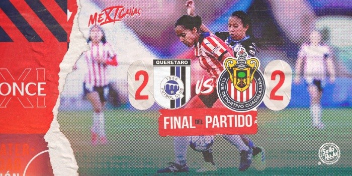 A pesar de ser líderes, de ser uno de los equipos más contundentes y de jugar con una jugadora de más durante más de 20 minutos, el conjunto de Chivas femenil no pudo derrotar a su similar de Querétaro, al solamente empatar 2-2 en el Estadio Olímpico Alameda.Hacia el final del encuentro, cuando el Guadalajara ya había empatado la pizarra, las jugadoras rojiblancas se cansaron de fallar, y es que Rubí Soto, Alicia Cervantes y Joseline Montoya tuvieron para anotar el gol del triunfo, pero todo se quedó en un suspiro y el empate se consumó.El equipo de Gallos femenil se fue al frente en la pizarra muy temprano en el juego, y es que al minuto 7 Sonia Vázquez venció a Celeste Espino para marcar el primero para su equipo.Sin embargo, Chivas no se quedó de brazos cruzados y Casandra Montero hizo su primer gol con la playera de las tapatías al minuto 20, festejando de gran forma.Querétaro volvió a retomar la ventaja antes de que finalizara el primer tiempo, gracias a un gran gol de Jaquelín al minuto 44, quien a la postre se fuera expulsada.Para el complemento, el Rebaño Sagrado salió con todo buscando el gol de la igualada y lo consiguió al minuto 64 y quién más si no, Alicia Cervantes tras un gran pase de Carlina Jaramillo.Con esto, Chivas se mantiene como equipo invicto al sumar ya 14 unidades en la tabla general y es líder de manera momentánea, esperando lo que hagan Monterrey y Pachuca.JL