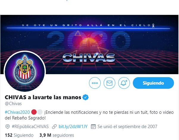 En el Guadalajara no dejan de invitar a la afición a que sigan las medidas necesarias para cuidarse del coronavirus, por lo que en sus redes sociales cambiaron su nombre de manera particular. "CHIVAS a lavarte las manos" aparece en la cuenta del equipo varonil, mientras que en la del femenil se puede leer "CHIVAS a quedarte en casa" como el nombre de usuario de las respectivas cuentas. Los equipos de todas las categorías del Rebaño, suspendieron actividades en las instalaciones de Verde Valle y trabajarán desde casa como medida de prevención del Covid-19. La Liga MX actualmente se encuentra detenida gracias a la pandemia y el organismo ha informado que aún no se tiene una fecha de regreso a las labores. AJ