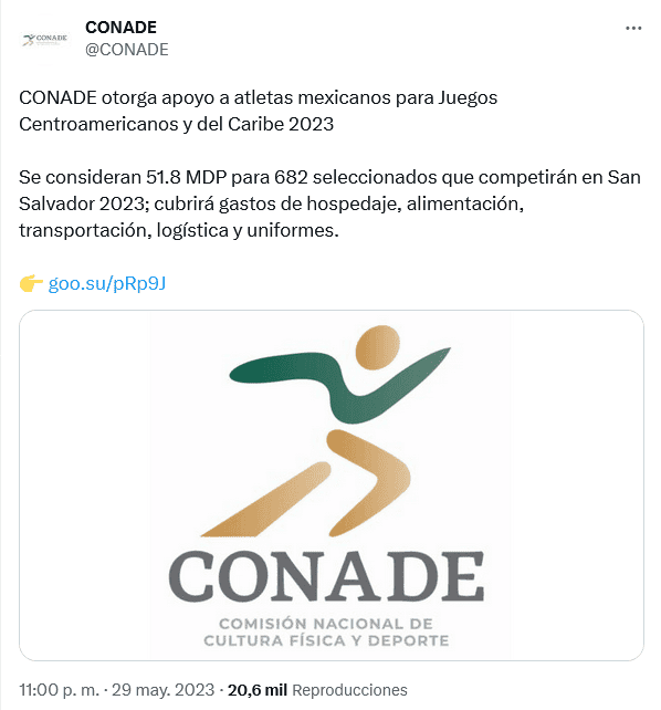 ¡Por fin! La Comisión Nacional de Cultura Física y Deporte aseguró un presupuesto de 51.8 millones de pesos para los 682 deportistas que estarán presentes en los Juegos Centroamericanos y del Caribe 2023 que tendrán sede en San Salvador, dicho presupuesto también cubre a los atletas de disciplinas acuáticas, después de tanta polémica y poco apoyo de la Conade hacia estos."En cumplimento a lo establecido en el Plan Nacional de Desarrollo 2019-2024, la Comisión Nacional de Cultura Física y Deporte (Conade) atiende y apoya a los atletas de Alto Rendimiento, con la finalidad de que representen a nuestro país en las competencias deportivas de carácter internacional", mencionó la Conade en su comunicado.De acuerdo con dicho comunicado que se publicó a través de sus redes sociales oficiales, este presupuesto tendrá que financiar todos los costos que representan el disputar este tipo de justas deportivas, como lo son el hospedaje, uniforme, entre otras cosas.“El Gobierno federal ha considerado 51.8 millones de pesos, para cubrir los gastos que implica la participación de la delegación integrada por 682 deportistas en los XXIV Juegos Centroamericanos y del Caribe San Salvador 2023, como son los servicios de hospedaje, alimentación, transportación aérea, logística y uniformes”, señaló la Conade. Teniendo en cuenta que dentro de esos 682 atletas están contados los deportistas de las disciplinas acuáticas, en esta ocasión, no tendrán que buscar por su propia cuenta el apoyo económico que en muchas veces se les negó por parte del organismo que dirige Ana Guevara en disputas deportivas anteriores. Donde incluso, nadadoras artísticas tuvieron que vender productos para conseguir los fondos monetarios necesarios para acudir a la Copa del Mundo de nado sincronizado en Egipto.O el más reciente caso del clavadista Jonathan Paredes quien pidió un "aventón" a Aeroméxico para que se hiciera posible su asistencia al Mundial de Clavados en Fukuoka, Japón tras clasificarse a dicha competencia en días pasados.Recordar que los Juegos Centroamericanos y del Caribe San Salvador 2023 darán inicio el viernes 23 de junio del presente año, y son parte del ciclo olímpico que comprenden también los Juegos Panamericanos Santiago 2023, buscando su boleto para el evento deportivo más importante que son los Juegos Olímpicos París 2024.OF