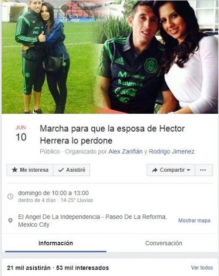 Luego de que fuera a dado a conocer la ausencia de Héctor Herrera con la Selección Mexicana de Futbol en lo que aparentemente sería un permiso especial del jugador para viajar a Portugal y reconciliarse con su esposa, las redes sociales explotaron y además de la gran cantidad de memes, incluso convocaron a una marcha."El día de hoy el centrocampista Héctor Herrera, capitán del Porto, abandonó los entrenamientos que se llevaban a cabo en Copenhague Dinamarca para ir a resolver dicha confusión con su señora esposa radicada en Portugal."Herrera es pieza indispensable en el accionar de la escuadra azteca, por lo que es de suma importancia que esté tranquilo y relajado durante los próximos días. Es por eso que convocamos a esta marcha, para que su esposa perdone y entienda a nuestro seleccionado nacional, hoy por él mañana por ti", se lee en los detalles del evento.La cita está programada para el domingo 10 de junio a las 10 de la mañana en el Ángel de la Independencia.OF