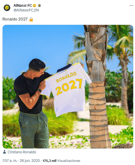 A los 40 años, el portugués Cristiano Ronaldo anunció su futuro para los siguientes dos años: renovó su contrato con el Al-Nassr hasta 2027, anunció este jueves el propio equipo de Arabia Saudita."La historia continúa…": con un video primero y con un mensaje en la red social X (antes Twitter), el Al-Nassr dio a conocer la renovación por dos años de la estrella portuguesa, que llegó a Arabia Saudita a principios de 2023. Su llegada hizo que varios jugadores, especialmente en los últimos años de sus carreras, se dejaran seducir por el futbol de ese país.Hace un mes, Cristiano publicó que "este capítulo ha terminado" horas después del final del campeonato saudita, en el que su club terminó tercero y sin trofeos, lo que se interpretó como su salida."La presencia de Ronaldo ha sido un factor clave en el desarrollo de la Saudi Pro League en los últimos dos años y medio. Abre la puerta a jugadores de élite y a jóvenes para venir a Arabia Saudita", declaró el mes pasado a la agencia AFP una fuente del Fondo de Inversión Público (PIF), el mayor inversor en el futbol saudita.Este fondo soberano controla a varios clubes del campeonato, entre ellos Al-Nassr, Al-Hilal o Al-Ahli, además de financiar otros grandes eventos deportivos en el país.Pese a haber sido el máximo goleador del campeonato, con 25 dianas, Ronaldo no ha logrado ganar un título nacional o continental con Al-Nassr, cayendo eliminado en semifinales de la Liga de Campeones asiática.El año pasado, el cinco veces Balón de Oro dijo que podría terminar su carrera en Al-Nassr, club de Riad y el favorito de varios miembros de la familia real del país.Arabia Saudita ha agitado el mundo del futbol, invirtiendo enormes cantidades de dinero para atraer a estrellas del balompié europeo. El país será la sede del Mundial 2034.*Mantente al día con las noticias, únete a nuestro canal de WhatsAppOF