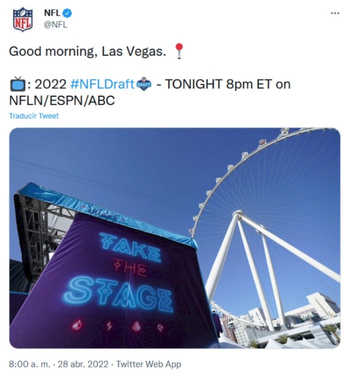¡Es hoy! El Draft de la NFL está cerca de comenzar, y los fanáticos del futbol americano ya están listos para actualizar sus redes sociales y ver qué jugadores ingresarán a sus equipos de cara la temporada 2022-23 del futbol americano estadounidense.Será hoy jueves 28 de abril en el Allegiant Stadium de Las Vegas, cuando cientos de jugadores jóvenes esperen que el comisionado Roger Goodell anuncie que han sido seleccionados por el que será su nuevo equipo en la NFL, y posen para la fotografía oficial con una gorra y un jersey.El Draft de la NFL es el evento donde los jugadores de futbol americano colegial (NCAA) aguardan para ser elegidos para cumplir su sueño de convertirse en profesionales.Se lleva cada año con la finalidad también de llevar y fortalecer a los equipos de la liga.Los mejores equipos de la última temporada, es decir, el campeón y los que disputaron las finales de conferencia, eligen al último, mientras que los peores tienen derecho a seleccionar en los primeros turnos.Se realizan siete rondas, de las que las primeras dos consisten en 32 selecciones cada una; en las siguientes hay algunas selecciones extras o picks compensatorios en las que se pueden anunciar salidas de jugadores, entrenadores y otros ejecutivos de los equipos.OF