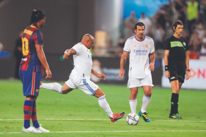 Los equipos “Leyendas” del Barça y el Real Madrid, con astros como Ronaldinho, Rivaldo o Figo y Roberto Carlos, jugaron ayer un disputado “Clásico” de exhibición que los merengues ganaron por un ajustado 3-2, deleitando al público que casi llenó el Estadio Bloomfield de Tel Aviv.En un amistoso en el que también participaron otros ex azulgranas de peso como Deco y Javier Saviola o ex madridistas como Alfonso o Fernando Sanz, los veteranos intentaron lucir su mejor juego y hacer gala de sus viejas aptitudes ante los 25 mil aficionados que asistieron al partido con fervor, en el primer “Clásico” que se disputó en Israel.Los goles del Madrid: Pedro Munitis al 42’, Alfonso Pérez al 44’ y Rubén de la Red al 69’. Por Barcelona: Ronaldinho al 28’ y Jofre Mateu al 60’.A lo largo del encuentro -con dos partes de 40 minutos cada una-, ambos equipos mostraron cierta solidez y pusieron en apuros al rival, demostrando que, pese a estar retirados mantienen todavía las habilidades que les hicieron destacar en competición profesional.Entre los más ovacionados estuvo Ronaldinho, quien hizo estilo de su arte futbolístico y fue el primero en marcar un gol de penalti en el minuto 28, tras una falta dentro del área a Saviola. La pasión por el brasileño se evidenció también cuando dos niños saltaron al campo en momentos distintos para abrazar al astro.En las gradas como fuera del campo, destacaron más los fans con camisetas e indumentaria del Barcelona, mucho más numerosos que los del Madrid.MQ