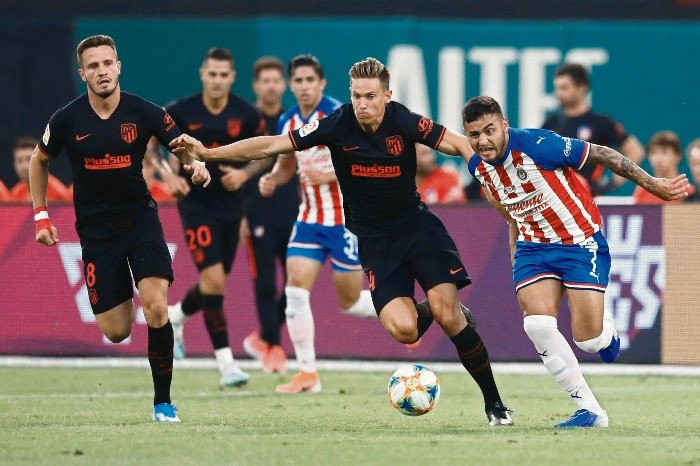 Fue sin duda el mejor partido que dio el Guadalajara en la International Champions Cup ante el Atlético de Madrid, pero ni siquiera así alcanzó para ganar.Chivas empató 0-0 con el Atlético de Madrid en el tiempo regular, y terminaron por perder en la tanda de penaltis 5-4.Pero el Rebaño mostró otra actitud, acompañamiento e intención, gracias al liderazgo de Raúl Gudiño con atajadas claves y Antonio Briseño como líbero guiando a sus acompañantes Oswaldo Alanís y Carlos Villanueva en la central; Alan Cervantes estaba coordinado con sus interiores Dieter Villalpando y Eduardo López. Oribe Peralta era referencia de marca y Alexis Vega buscó ser un buen socio.Gudiño fue exigido al minuto 19, Thomas Lemar sacó potente disparo desde las afueras del área, pero el arquero rojiblanco fue a mano cambiada para desviar el balón. Minutos después hizo otra gran atajada para limpiar el error de no quedarse con un balón aéreo.El partido cambió al 24’, Villanueva sacó balón de zona de peligro con largo pelotazo, Marcos Llorente no midió bien, botó el esférico y le favoreció a Vega, quien ganó la posesión. Cuando se enfilaba al arco, fue derribado. El zaguero del los Colchoneros se fue expulsado.Tras quedarse con un elemento menos, Atlético mantuvo un 4-4-1 y los tapatíos con un 5-3-2. Mejoró el Rebaño en su accionar, pero le faltó profundidad y al final le ajustó para irse al descanso con empate 0-0.Atlético cambió todo el equipo en el complemento, se dio el ingreso del mexicano Héctor Herrera y los tapatíos también mandaron modificaciones. El cotejo entró en reacomodo y Villanueva se equivocó al 61’, al irse expulsado. Ambos equipos terminaron las acciones con 10 jugadores.Gudiño de nueva cuenta le dijo a Boy que estaba en condiciones de ser titular ante Tigres, al sacar otro balón con peligro de gol, tras cobro de tiro libre de Koke. Tras las modificaciones, el Guadalajara cambió a cuatro en el fondo con la salida de Alanís, por lo que recorrió a Josecarlos Van Rankin con a la central con el “Pollo” y así terminaron los 90 minutos para irse a los penales.Ahí, desde los once pasos, Chivas tuvo el triunfo en el quinto tiro tras una atajada de Gudiño. Sin embargo, Fernando Beltrán entregó su tiro al arquero suplente Adán, y en la muerte súbita el Rebaño perdió a las primeras de cambio con la falla de Alan Cervantes, a quien el cancerbero le tapó su tiro para el triunfo español.Tomás Boy sorprendió al iniciar con línea de cinco en la defensa, algo que no es común que practiquen los equipos del “Jefe”. Otra sorpresa fue ver que en esa zaga no apareció Hiram Mier, pero sin duda la gran novedad fue que, por fin, el Rebaño colgó un cero en su arco.Al minuto 24 el Guadalajara tuvo la ventaja de quedarse con superioridad numérica tras la expulsión de Marcos Llorente por un jalón sobre Alexis Vega. El hombre de más nunca se notó con las Chivas, pues no pudieron ni supieron imponer condiciones al Atlético de Madrid. En los penaltis Tomás Boy sorprendió al mandar a cobrar los tiros decisivos a sus jugadores jóvenes. Fernando Beltrán cobró el quinto disparo del Rebaño, pero falló y se fue la posibilidad de ganar. Enseguida, Alan Cervantes cerró la primera ronda de la muerte súbita y falló, para el triunfo colchonero.1 Raúl Gudiño, 2 J. Van Rankin, 3 Oswaldo Alanís, 14 Antonio Briseño, 23 Carlos Villanueva, 16 Miguel Ponce, 31 Alan Cervantes, 7 Dieter Villalpando, 10 Eduardo López, 7 Alexis Vega, 24 Oribe Peralta, DT. Tomás Boy.13 Jan Oblak, 23 Kieran Trippier, 15 Stefan Savic, 22 Mario Hermoso, 12 Renan lodi, 14 Marcos Llorente, 8 Saúl Níguez, 20, Víctor Machín, 11 Thomas Lemar, 19 Diego Costa , 9 Álvaro Morata, DT. Diego Simeone.