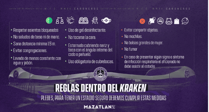 A través de redes sociales, el equipo de Mazatlán FC ha confirmado que iniciará el Torneo Guard1anes 2021 con publicó en el Estadio Kraken, en el duelo entre los sinaloenses y el Necaxa del próximo viernes. "En conjunto con las autoridades Estatales, municipales y de la Liga MX, al cumplir con los protocolos establecidos, el Kraken podrá recibir a los aficionados a partir de la jornada 1 del Torneo Guard1anes 2021 con una capacidad hasta del 40% del aforo", se lee en el comunicado. Al contar con color amarillo en el semáforo epidemiológico nacional, el estado de Sinaloa ha decidido abrir los inmuebles deportivos, no solo en el futbol, también en el beisbol. "En Mazatlán F.C. nos comprometemos a seguir cumpliendo con cada uno de los requerimientos establecidos para celebrar nuestros partidos a puerta abierta y así continuar con la presencia de aficionados al futbol en el puerto más importante de México: Mazatlán", se agrega. AJ