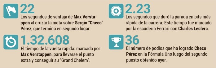 Max Verstappen inició la defensa de su tercer título dominando de punta a punta el Gran Premio de Bahréin, sumando 55 victorias en su haber.El tricampeón mundial no encontró oposición alguna para alcanzar su quinto Grand Chelem al obtener la 33ª pole en calificación, liderar cada una de las 57 vueltas al circuito de Sakhir y marcar la 31ª vuelta rápida en carrera.El desempeño del neerlandés le permitió cruzar la meta con una ventaja de 22.457 segundos sobre su compañero Sergio Pérez, que terminó en la segunda posición, obteniendo el primer 1-2 de la temporada para el innovador RB20, dejando en claro que Red Bull continúa siendo el enemigo por vencer.Sergio Pérez se repuso de una quinta posición en la parrilla con una buena arrancada que lo colocó cuarto por delante de Sainz, dando caza de Leclerc y Russell al cabo de 12 giros gracias a un ritmo agresivo y constante. El tapatío administró los cambios de neumáticos suaves - duros - suaves a la perfección, para lograr el 15º segundo sitio en 14 años de trayectoria y acumular 36 podios en su palmarés.Carlos Sainz cerró el podio a bordo del Ferrari con un tercer lugar obtenido a base de garra, superando a su compañero Charles Leclerc por 14.559 segundos. El madrileño tripuló el SF-24 con la determinación de quien se quiere hacer extrañar terminando la temporada.Charles Leclerc tuvo un día difícil con los frenos de su SF-24. Perdió la segunda posición a manos de Russell en el tercer giro, la tercera ante Pérez en la vuelta 7, y la cuarta ante Sainz en la 11. La escudería lo ingresó a fosos por el compuesto duro una vuelta después, haciendo el recorte a su compañero, que después de entrar por el mismo compuesto en la vuelta 15, dio nueva cuenta del monegasco al final de la recta principal.George Russell logró la quinta plaza a bordo del Mercedes W15 después de rodar en la segunda posición al inicio de la competencia. Los mejores ritmos del Red Bull de Pérez y los Ferrari de Sainz y Leclerc terminaron por ubicarlo en la mejor posición posible, no sin antes superar en el duelo interno del equipo alemán a Hamilton, que terminó séptimo.Lando Norris hizo valer el buen ritmo del McLaren MCL 38 para superar a Hamilton por 1.866 segundos tras una larga batalla por la sexta posición.El avance de los autos ingleses con respecto al Mercedes fue evidente. Hamilton se coló entre los autos de Woking gracias al veloz ritmo que imprimió durante el ingreso a fosos de Piastri en el giro 35, arrebatandole el séptimo sitio.Oscar Piastri se mantuvo cerca de su compañero Norris durante tres quintos de carrera hasta que ingresó por segunda ocasión a fosos, cayendo a la octava posición detrás de Hamilton, resultando imposible alcanzarlo.Fernando Alonso tuvo que resignarse con la novena posición, dejando atrás las esperanzas que le había dado el Aston Martin AMR24 en las pruebas previas. Los 18.805 segundos que lo separaron del McLaren de Piastri son muestra clara del trabajo que tienen por delante.Lance Stroll alcanzó el último punto en disputa para Aston Martin después de experimentar un despiste provocado por Hulkenberg en el arranque de la competencia. El canadiense cruzó la meta 18.329 segundos detrás de Alonso.El espectáculo del Gran Circo está de regreso con la continuidad del buen momento de Red Bull.Ferrari mejoró sensiblemente su desgaste de neumáticos en tandas largas, pero está lejos del ritmo de Verstappen, no así del de Pérez, que, aun habiendo llevado a cabo una carrera impecable, tuvo que batallar con Sainz desde la arrancada. El tapatío debe obtener una mejor posición en la calificación.El Gran Circo se desplaza a Saudi Arabia para celebrar el segundo Gran Premio de la temporada, el próximo sábado 9 de marzo.¿Podrán Ferrari, Mercedes y McLaren dar la pelea a Red Bull?Jorge OrendainLuego de haber cerrado una temporada histórica el año pasado, Max Verstappen demostró que este 2024 su hambre de triunfo sigue intacta y lo hizo ganando, de manera categórica en Bahréin con un “Grand Chelem”.El “Grand Chelem” es un término que se utiliza cuando un piloto logra la “Pole position”, ganar la carrera habiendo liderado todas las vueltas de principio a fin y conseguir la vuelta rápida.Verstappen es uno de los pocos pilotos que lo han logrado en la historia de la categoría, de hecho de los 113 pilotos que han conseguido una victoria dentro de la Fórmula Uno, sólo 26 lo han hecho con un “Grand Chelem”.Los pilotos que lo han conseguido son: Jim Clark, Alberto Ascari, Jackie Stewart, Ayrton Senna, Nigel Mansell, Sebastian Vettel, Nelson Piquet, Juan Manuel Fangio, Jack Brabham, Mika Hakkinen, Mike Hawthorn, Stirling Moss, Jo Siffert, Jacky Ickx, Clay Regazzoni, Niki Lauda, Jacques Laffite, Gilles Villeneuve, Gerhard Berger, Damon Hill, Michael Schumacher, Fernando Alonso, Nico Rosberg, Charles Leclerc, Lewis Hamilton y Max Verstappen.El 9 de marzo se disputará la segunda fecha de la temporada 2024 de la Fórmula Uno, cuando se corra en el Circuito de Jeddah en Arabia Saudita. Una vez más, por la celebración del ramadán, la carrera será el día sábado a las 11:00 horas del tiempo de México. La temporada pasada, Sergio “Checo” Pérez se llevó el triunfo en este circuito.