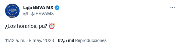 Este lunes, la Liga MX dio a conocer las fechas de los partidos de Cuartos de Final del Torneo Clausura 2023.Según el anuncio oficial, los partidos de ida de la Liguilla se jugarán los días miércoles 10 y jueves 11 de mayo; mientras que los de Vuelta serán el sábado 13 y el domingo 14.El Clásico Tapatío de Liguilla entre el campeón Atlas y Chivas se disputarán el jueves 11 en el Estadio Jalisco a las 19:00 horas; en tanto que el cierre de la llave será el domingo en el Estadio Akron, también a las 19:00 horas.Estadio TSM, 19:00 horasEstadio Alfonso Lastras, 21:10 horasEstadio Jalisco, 19:05 horasEstadio Universitario, 21:10 horasEstadio BBVA, 19:06 horasEstadio Azteca, 21:16 horasEstadio Nemesio Diez, 12:00 horasEstadio Akron, 19:00 horasOF