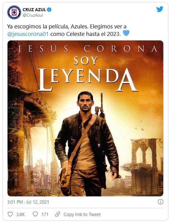 Después de muchas especulaciones, el Cruz Azul confirmó lo que sus aficionados querían conocer. Los celestes anunciaron la renovación del portero y capitán del club, José de Jesús Corona.Tras conseguir el título del Guardianes 2021, la continuidad de "Chuy" estaba en duda, ya que su contrato venció este verano. Su nombre había sido puesto en equipos como las Chivas, pero el deseo de defender el arco celeste se mantenía.Al estilo del cartel de la película "Soy Leyenda", fue como el actual campeón del futbol mexicano informó sobre la extensión de la relación con el también medallista olímpico en Londres 2012. El contrato sería por los siguientes dos años.José de Jesús Corona lleva 12 años defendiendo el marco celeste. Llegó proveniente de los Tecos de la UAG. Ha jugado 456 partidos y conseguido títulos como el de la Liga MX, Copa MX y la Concacaf Liga de Campeones.JM