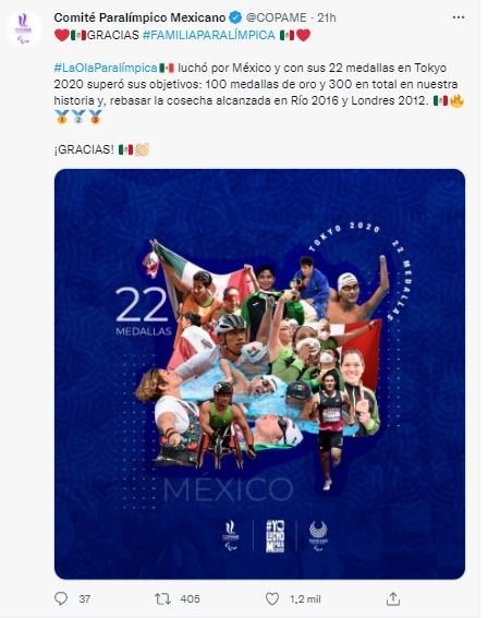 La delegación mexicana concluyó los Juegos Paralímpicos de Tokio con unos excelentes resultados que reflejan su mejor actuación desde Pekín 2008 con 22 medallas (7 oros, 2 platas y 13 bronces) y la hacen, a nivel histórico, superar las trescientas preseas.Hace cinco años, en Río 2016, México consiguió 15 medallas (4 oros, 2 platas y 9 bronce), siendo la edición más pobre en resultados desde Atlanta'96, cuando sumó 12.Por ese motivo, uno de los objetivos del Comité Paralímpico Mexicano era superar las quince medallas de Río para seguir impulsando el deporte de personas con discapacidad en el país, objetivo que han logrado.A lo más alto del podium han subido José Rodolfo Chessani García y Mónica Olivia Rodríguez Saavedra (atletismo), Amalia Pérez (halterofilia), Jesús Hernández Hernández, Arnulfo Castorena y Diego López Díaz (natación) y Juan Diego García López (taekwondo).Medallas de plata se colgaron la atleta Gloria Zarza y el nadador Diego López Díaz, mientras que los bronces fueron para los atletas Leonardo de Jesús Pérez, Juan Pablo Cervantes, Rosa Carolina Castro, Rosa María Guerrero Cazares y Rebeca Valenzuela Álvarez; los judocas Eduardo Adrián Ávila Sánchez y Lenia Ruvalcaba; los nadadores Jesús Hernández Hernández por partida doble, Diego López Díaz, Ángel de Jesús Camacho, Fabiola Ramírez y Nely Miranda Herrera.En números, estos Juegos de Tokio también han sido importantes para México porque las medallas de oro ya superan el centenar histórico y las 300 en general.La mejor actuación de México en los Juegos Paralímpicos se remonta a los de Arnhem (Países Bajos) en 1980, en los que la delegación mexicana consiguió 42 medallas, veinte de ellas de oro.Si quieres tener más contenido, más imágenes y aún más noticias, entonces descarga INFORMAPlus, la aplicación digital de EL INFORMADOR, donde tenemos materiales exclusivos para tí.Descarga la aplicación y pruébala GRATIS por treinta días. Para iOS: https://apple.co/35jaVgbPara Android: https://bit.ly/3gwVSEVSi eres suscriptor de EL INFORMADOR tu acceso está incluido, solicítalo al 33 3678-7777JL