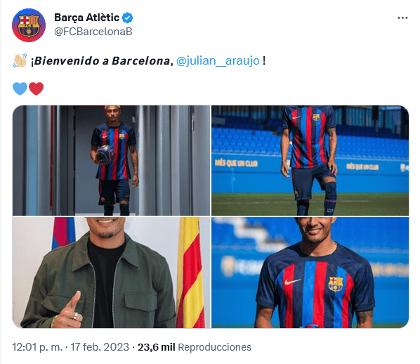 El FC Barcelona y Los Angeles Galaxy, de la Major Soceer League (MLS), han llegado a un acuerdo para el traspaso del lateral derecho con doble nacionalidad mexicana y estadounidense Julián Araujo, que se incorporará al Barça Atlètic, el filial del club azulgrana.Según informó este viernes la entidad, el acuerdo con el futbolista es para las próximas tres temporadas y media, hasta el 30 de junio de 2026.Está previsto que en los próximos días Julián Araujo se sume a los entrenamientos del filial azulgrana bajo las órdenes del también mexicano Rafa Márquez.Nacido en Lompoc (California) en 2001, el lateral dispone de la doble nacionalidad -estadounidense y mexicana-, ya que es hijo de padres mexicanos.Araujo aterriza en el club azulgrana después de que en el último día del mercado invernal, el pasado 31 de enero, el Barcelona no llegara a tiempo de inscribir por 18 segundos su fichaje debido a un error técnico en el sistema.El futbolista firmó su nuevo contrato en las oficinas de la Ciudad Deportiva Joan Gamper, donde estuvo acompañado por el vicepresidente Rafael Yuste; el directivo responsable del Futbol Formativo, Joan Soler; el director de Futbol, Mateu Alemany; el director deportivo, Jordi Cruyff, y el director del Futbol Formativo, José Ramon Alexanco.OF
