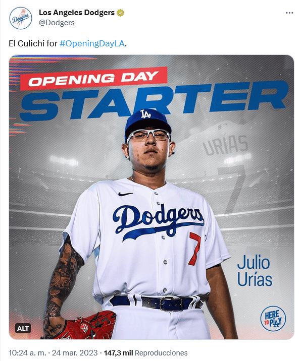 Este viernes, Los Angeles Dodgers anunciaron que el mexicano Julio Urías será el abridor en el partido inaugural de la temporada 2023 de la MLB, un rol que asumirá por primera vez en su carrera."El Culichi", que la semana pasada lanzó por última vez con la Selección Mexicana en su participación en el Clásico Mundial de Beisbol 2023, declaró para la MLB que está enfocado en alistarse para la temporada regular, que está por iniciar.El pasado 21 de marzo, sin ser aún oficial, el manager de los Dodgers, Dave Roberts, dijo a periodistas que el mexicano sería el encargado de lanzar, mientras que el también zurdo Clayton Kershaw, quien ha ganado tres veces el premio Cy Young, tiraría en el segundo partido. La información ya fue finalmente confirmada este viernes por la novena en sus redes sociales.Julio Urías tomará el rol que el año pasado correspondió al derecho Walker Buehler, quien está fuera por lesión, y al mencionado Kershaw, que ha sido seleccionado nueve veces para el All-Star Game y que tiene cinco títulos de efectividad en la MLB, y un promedio de 2.48 en 15 temporadas.La campaña pasada, Julio Urías tuvo foja de 17-7, con efectividad de 2.16 en 31 aperturas, la mejor de la Liga Nacional; culminó como tercero en las votaciones al premio Cy Young.Será el jueves 30 de marzo cuando los Dodgers y Julio Urías inicien la temporada 2023 ante los Arizona Diamondbacks, en punto de las 20:10 horas.OF