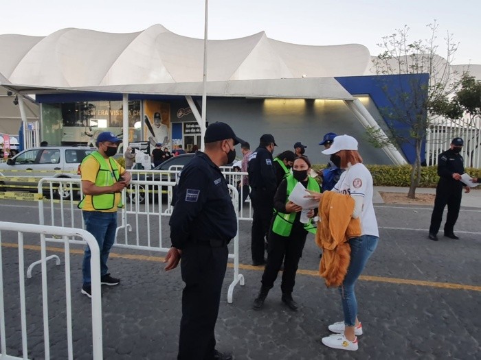 A unas horas de que arranque la Gran Final del beisbol en el Estadio Panamericano, los Charros de Jalisco han acatado las medidas sanitarias ya establecidas. Al público asistente se le ha solicitado su respectivo certificado de vacunación o su prueba PCR negativa de COVID-19 para poder ingresar al inmueble. El procedimiento ha sido ágil desde que se abrieron las puertas al público. Con un total de cuatro accesos para la afición, y con el apoyo de personal del staff y de seguridad, los asistentes no demoran más de un minuto en comprobar su identidad y su documento correspondiente para acceder al estadio donde se jugará el primer duelo de la Serie de Campeonato entre los Charros de Jalisco y los Tomateros de Culiacán. Días atrás se había establecido que el certificado de vacunación y la prueba PCR negativa tenía que presentarse exclusivamente de forma impresa; sin embargo, el público también ha podido ingresar presentando su documentación de manera digital y esto ha agilizado aún más el proceso. Ya para quienes han tenido problemas con la descarga de sus respectivos documentos, la directiva de los Charros instaló un módulo de impresión a las afueras del estadio para apoyar a las personas con la impresión de sus certificados de vacunación. Asimismo, desde el ingreso al inmueble se le exhorta a la afición de Charros y Tomateros hacer el uso correcto del cubrebocas durante el duelo de esta noche donde las novenas de Culiacán y Jalisco buscarán tomar ventaja en la lucha por el título de la Liga Mexicana del Pacífico.JL