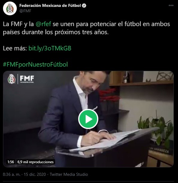 La Federación Mexicana de Futbol y la Real Federación Española de Futbol firmaron un acuerdo para potenciar el futbol en ambos países, este arreglo lo firmaron Yon de Luis y Luis Rubiales para materializar la relación por los próximos tres años."Para la Federación Mexicana de Futbol es motivo de gran entusiasmo materializar este acuerdo de colaboración con la Real Federación Española de Futbol. Trabajar de la mano, nos permitirá a ambas instituciones intercambiar experiencias y mejores prácticas, lo que nos llevará a continuar en una línea ascendente de desarrollo y crecimiento", mencionó Yon de Luisa.Uno de los objetivos de este acuerdo es facilitar partidos entre las selecciones mexicana y española, así lo informó Luis Rubiales. "Será el inicio de una gran etapa en la relación entre ambas Federaciones. Tenemos mucho que aprender de México y pensamos que algo podemos también aportar nosotros a este enorme país en todos los sentidos. Hemos empezado un camino y queremos estrechar las relaciones con partidos, incluso, entre ambas Selecciones en cuanto la pandemia lo haga posible".Después de algunos meses de negociaciones, las Federaciones buscarán apoyar el crecimiento del futbol femenil, tener un plan integral de capacitación para entrenadores, preparadores físicos y árbitros, proyectos de integración social a través del futbol en poblaciones vulnerables, accesos de recursos estratégicos, entrenamientos y programas de desarrollo para apoyar a la profesionalización y formación de futbolistas, entre otros beneficios.OF