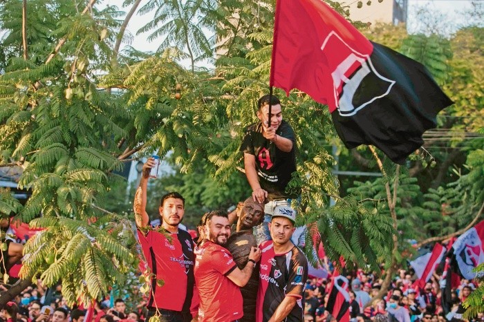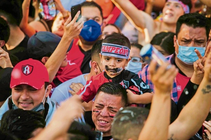 Tras la coronación del domingo ante León en la Final del futbol mexicano, la euforia y el éxtasis del mundo Atlas continuaron ayer en las calles, pero ahora con los jugadores entregados de lleno a su Fiel afición rojinegra.Antes de la fiesta y el vínculo entre los Zorros y La Fiel, el equipo acudió a dar gracias a la Catedral Metropolitana de Guadalajara, sin acceso a aficionados. Los futbolistas fueron los encargados de leer la palabra de Dios, así como llevar las ofrendas al altar.Finalizada la misa, el dueño de los Zorros, Alejandro Irarragorri, se colocó hasta el frente del autobús junto con Julio César Furch y el trofeo de campeón y así comenzó el recorrido por calles y avenidas de la ciudad, saliendo del Centro tapatío hasta llegar a la Glorieta de los Niños Héroes.El escenario puesto en la también llamada Glorieta de las y los desaparecidos aguardaba la llegada de los monarcas, mientras la música, los gritos y el gran ambiente iban en aumento.Al filo de las 17:00 horas, el autobús destapado hizo su aparición y la locura pasional de la gente aumentó en altos niveles de fervor por sus ídolos.Todos querían inmortalizar el momento. Los fanáticos desde abajo, apuntando con celulares al autobús descubierto, y algunos jugadores también para alimentar sus redes.Nadie dejó de cantar al ritmo del Murguero, de “Atlas campeón” y de “Arriba el Atlas”.Cerca de las 18:30 horas, el equipo dejó el estrado y las cumbias villeras aparecieron, haciendo que los miles y miles de presentes perdieran la compostura e incluso invadieran la zona destinada a los fotógrafos.Quizá los 70 años sin festejar un campeonato despertaron una nueva euforia atlista.El festejo era lo esperado y no defraudó. Decenas de miles de aficionados se dieron cita en la caravana que partió desde la Catedral Metropolitana de Guadalajara y hasta la Glorieta de los Niños Héroes para celebrar a los campeones.Al ritmo de “el que no brinque es chiva”, “olé, olé, campeón, campeón”, “cómo no te voy a querer” y entonando la canción de El Murguero, la afición, enfundada en su playera rojinegra, esperaba ansiosa por la llegada de sus nuevos ídolos, los que hicieron que experimentaran un sentimiento hasta este momento desconocido.A las 17:00 horas el equipo hizo su aparición por la avenida Niños Héroes y la algarabía se desató, y es que “se viene el Atlas, campeón”, fue lo que sonó a todo volumen.El señor Sergio González Velasco, con una notable cara de satisfacción de ver a su equipo campeón, platicó que encontrarse en dicha posición “es una cosa muy esplendorosa, porque a pesar de todo el tiempo que sufrimos, somos gente honesta, gente de mucha fe y no porque no tengamos muchos campeonatos eso nos entristezca; eso no importa, lo realmente importante es que estamos viviendo un gran momento”, dijo.En momento de euforia, el director técnico Diego Cocca prometió que el título conseguido el domingo no será el único en esta nueva era, sino que es el comienzo de algo importante de la mano de Grupo Orlegi.“Para nosotros era muy importante contar con todos ustedes, tenemos un grupo muy comprometido, los necesitamos, los queremos adentro de la cancha (estadio) siempre, porque esto recién empieza y vamos por más”, dijo un eufórico y disfónico Diego Martín Cocca, con el trofeo de campeón en brazos.Quien andaba extasiado, era el presidente del consejo directivo de Grupo Orlegi, Alejandro Irarragorri, quien en compañía de su esposa y del alcalde de Guadalajara, Pablo Lemus, celebraron con su lema de “Ganar Sirviendo”.No era para menos, pues en tan solo cinco torneos al frente de la institución logró lo que no se había podido conseguir desde 1951.MQ