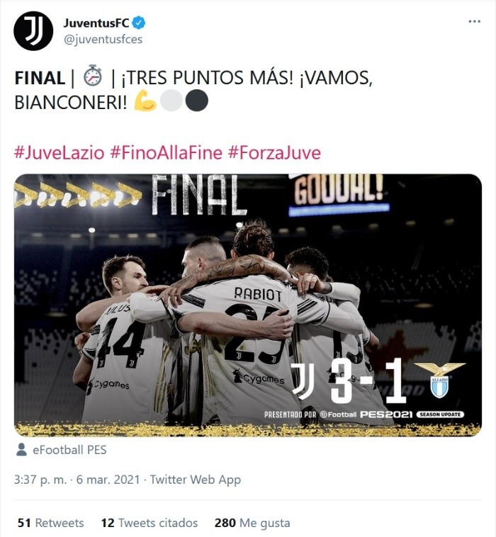 La Juventus remontó y venció 3-1 a la Lazio este sábado en un duelo de la 26 jornada de la Serie A, con un doblete del español Álvaro Morata (57 y 60).Se puso por delante el equipo romano gracias a una excelente jugada del argentino Joaquín Correa (14), tras una pérdida en el centro del campo del vigente campeón italiano.Pero la Juventus dio la vuelta a la situación, primero con un tanto de Adrian Rabiot, rompiendo líneas y rematando al primer poste (39), y luego con Morata, letal al contraataque (57) y certero desde el punto fatídico (60).Con un partido menos, la Juventus queda tercera a siete puntos del líder Inter, que el lunes tiene un duro compromiso contra el Atalanta.También este sábado, el Udinese logró una importante victoria en su lucha por evitar el descenso, imponiéndose al Sassuolo por 2-0 con goles del español Fernando Llorente (42) y del argentino Roberto Pereyra (90+3).Con este triunfo, el equipo de Udine escala a la décima plaza de la Serie A, con 32 puntos, doce por encima de la zona de descenso.Antes, en otro duelo de la zona baja de la clasificación, Spezia y Benevento empataron a un gol y ambos suman 26 puntos.JM
