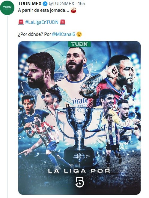 ¿Quieres leer buenas noticias? Pues ayer Televisa dio a conocer que partidos de futbol español, en concreto, de LaLiga, serán transmitidos en televisión abierta a partir de la siguiente jornada.Según lo difundido por TUDN, algunos de los partidos de la Primera División del futbol español podrán ser vistos en Canal 5 en vivo, sin embargo, no se han revelado cuáles serán dichos juegos ni cuáles serán los equipos.La noticia que sorprendió a muchos en redes sociales, no es nueva para otros. Y es que no será la primera vez que Televisa tenga los derechos de LaLiga, ya que hace varios años transmitían los juegos en el canal de paga TUDN.En su cuenta de Twitter, Televisa informó que el primer partido que transmitirán en vivo será el del próximo lunes 10 de enero, el Espanyol vs Elche a las 13:50 horas.OF
