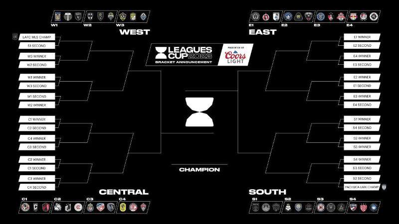 Este jueves, la Liga MX y la MLS presentaron este jueves el calendario de partidos y la llave para las rondas de eliminación directa de la Leagues Cup 2023, torneo oficial de Concacaf en el que 47 equipos (18 de la Liga MX y 29 de la MLS) competirán al estilo de la Copa del Mundo a partir del 21 de julio y hasta el 19 de agosto con sede en Estados Unidos y Canadá.La Fase de Grupos comenzará el viernes 21 de julio y se extenderá hasta el 31 de julio. Los equipos que avancen competirán en las rondas de eliminación directa, iniciando con los Dieciseisavos de Final del 2 al 4 de agosto; luego seguirán los Octavos de Final del 6 al 8 del mismo mes. Ocho equipos competirán en los Cuartos de Final del 11 al 12 de agosto, antes de los dos partidos de Semifinales el día 15.La final de Leagues Cup 2023 y el partido por el tercer lugar se jugarán el sábado 19 de agosto y determinarán los tres clubes que se clasificarán para la Liga de Campeones de Concacaf 2024.El campeón de la MLS Cup 2022, Los Angeles FC, clasificó directamente y será anfitrión de su partido en los Dieciseisavos de Final. Así también, el Club Pachuca avanzó de forma directa por ser el campeón de la Liga MX con más puntos acumulados en los torneos Clausura y Apertura del año 2022. Pachuca ingresará a la Etapa Eliminatoria en la región Sur, en el grupo opuesto al LAFC, que ingresa en la región Oeste.A los Dieciseisavos de Final, avanzarán los dos mejores equipos de cada grupo y se unirán a los dos campeones de las ligas antes mencionados. El Club mejor ubicado de cada grupo enfrentará a un segundo lugar de grupo de cada región.Debido al número de equipos impares, el equipo que se ubica el segundo lugar en el Grupo 1 de la Región Sur ingresará al grupo de las llaves de Leagues Cup 2023 en la Región Oeste debido a que ese grupo tiene el equipo de menor rendimiento en la temporada 2022 (Club número 2 en la región Sur).El acomodo en los Dieciseisavos y el camino que deberán seguir los equipos en toda la ronda eliminatoria se muestra en la Llave:En la fase de eliminación directa, si se presentan duelos entre equipos de la MLS y la Liga MX, el Club de la MLS será local en su estadio. En caso de que los partidos sean MLS vs. MLS durante los Dieciseisavos de Final, se jugarán en la sede del ganador de grupo.A partir de la fase de Octavos de Final, enfrentamientos entre dos clubes de la MLS se jugarán en la sede del equipo con mejor rendimiento de la temporada regular 2022. Partidos Liga MX vs Liga MX en la ronda de eliminación se llevarán a cabo en una sede designada por el Comité Organizador.Las posibles sedes regionales para partidos entre dos clubes de la Liga MX durante la ronda eliminatoria serán las siguientes:OF