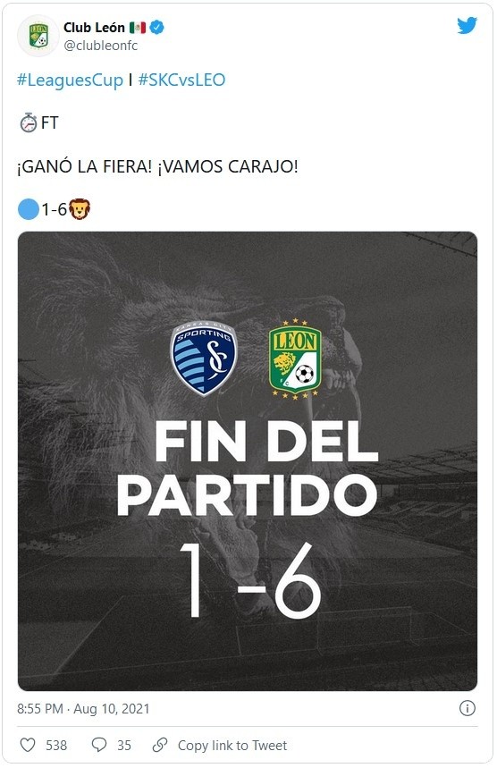Siempre se ha dicho que, cuando hay enfrentamientos entre equipos de la MLS y la Liga MX, los mexicanos “agarran” a los estadounidenses en mala forma, en plena pretemporada.Pero ahora ya se vio que eso no marca la diferencia, o no es pretexto.León vapuleó al Sporting Kansas City, líder de la Conferencia Oeste de la MLS, al golearlo 6-1 en los cuartos de final de la Leagues Cup. Media docena de goles.Los Panzas Verdes de inicio a fin fueron mejores que los estadounidenses, que no mostraron el porqué son catalogados como uno de los mejores equipos de la Major League Soccer.A los quince minutos, el juego acabó. Santiago Colombatto aprovechó un rechace del portero para abrir el marcador, y de ahí para adelante.Omar Fernández anotó dos goles (26' y 45') para acrecentar la ventaja, uno con tiro de fuera del área y el segundo rematando en el área chica.El intento de reacción del Kansas vino con un tanto de Cameron Duke (60'), pero como respuesta León anotó otros tres goles por conducto de Ángel Mena (63'), Jean Meneses y Víctor Dávila (77').Si te interesó esta noticia y quieres saber más, entonces descarga y descubre INFORMAPlus, la aplicación digital de EL INFORMADOR, en donde tenemos contenidos exclusivos, seleccionados por nuestros editores, para darles una experiencia más completa a los lectores. Si eres suscriptor de EL INFORMADOR tu acceso está incluido, solicítalo al 33 3678-7777Descarga la aplicación y pruébala GRATIS por treinta días.Para iOS: https://apple.co/35jaVgbPara Android: https://bit.ly/3gwVSEVJM