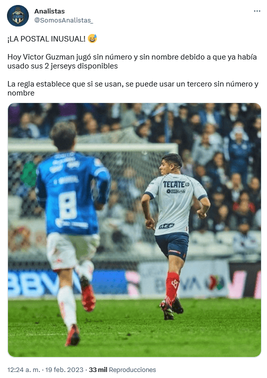 El sábado, Rayados de Monterrey venció por 2-1 a Necaxa, pero no fue el resultado del juego de la Jornada 8 lo que más llamó la atención, sino un detalle en la camiseta de uno de los futbolistas.En el duelo, Germán Berterame anotó el gol del triunfo en los últimos minutos, pero lo que desató la charla en redes sociales fue el hecho de que el defensa Víctor Guzmán terminó el partido utilizando un jersey sin número.Muchos usuarios de Internet comenzaron a cuestionar si este detalle significaría una sanción para Rayados, sin embargo, el equipo no infringió en el reglamento.Cerca del final del partido, Víctor Guzmán disputó el balón con Édgar Méndez, de Necaxa, por lo que se le rompió la camiseta; pronto se la cambió para seguir jugando, pero se puso una que no tenía estampado el número que utiliza, debido a que ya había usado las dos con las que puede disputar un encuentro.La Liga MX no castigará al Monterrey debido a que el reglamento indica que en caso de que se utilicen las dos playeras, un jugador puede usar, de emergencia, una camiseta sin número.OF