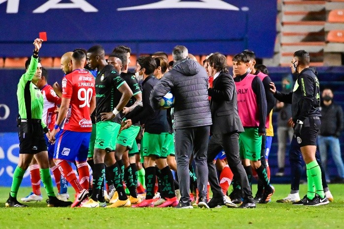 El ecuatoriano Félix Torres, defensa del Santos Laguna, denunció que al final del duelo que su equipo perdió 1-0 ante Atlético San Luis recibió insultos racistas y destacó su orgullo por el color de su piel."El dolor que siento no lo puedo describir; quiero mucho mi color me siento identificado como negro. Agradezco a mis compañeros que me respaldan y me quieren así, sin importar el color que yo tenga", dijo Torres al final del juego de la fecha siete del Clausura.Félix Torres insinuó que los insultos llegaron de los jugadores reserva del San Luis; explicó que las burlas fueron las que provocaron su expulsión en tiempo de compensación cuando fue a buscar un balón que había salido cerca de la banca del San Luis para reanudar rápido el partido."Fui expulsado por reaccionar a unas palabras que me dolieron demasiado, me siento golpeado en este momento. Siento mucha tristeza porque está pasando esto en el fútbol", insistió Torres.El central de Santos subrayó que deben terminar los insultos por el color de piel de una persona."Yo no tengo problemas con nadie, sin importar del color que sea. Lo que pasó hoy no puede seguir pasando, ni en el futbol ni en otras cosas; me siento muy triste".Su compañero, el brasileño Matheus Doria tomó el micrófono antes de que el uruguayo Guillermo Almada, entrenador del Santos Laguna compareciera ante los medios de comunicación para denunciar los insultos que hicieron llorar a Félix Torres."No pueden pasar en el futbol situaciones de racismo, Félix está llorando en el vestidor, por eso vengo a hablar. Esto no debe pasar ni en México, ni en Brasil, ni en ningún lado", acusó Doria.Al tomar su lugar en la conferencia de prensa, Guillermo Almada confesó que él no escuchó cuáles fueron los insultos contra su jugador, pero de todas maneras le expresó su apoyo."Me voy con mal sabor de boca. Vi que Félix estaba rodeado por sus compañeros y no he conversado con él. Esto del racismo es lamentable porque eso no se puede dar en ningún futbol del mundo y estoy con Félix", sentenció el estratega.Santos se enredó en un duelo con San Luis en el medio campo. San Luis tomó la ventaja en el primer tiempo. Santos dominó el segundo lapso, creó algunas opciones de peligro, pero no tuvo puntería para empatar el juego.Respecto al desempeño de sus dirigidos, Almada reconoció que merecían salir con la derrota por los fallos que tuvieron al frente."El partido fue muy trabado. De lo que pudimos jugar merecíamos perder; tomamos riesgos, tuvimos situaciones, pero no convertimos".La derrota dejó a Santos con 12 puntos en el quinto lugar del certamen. En la jornada ocho del Clausura 2021, Santos recibirá a Juárez FC el domingo 28 de febrero.OF