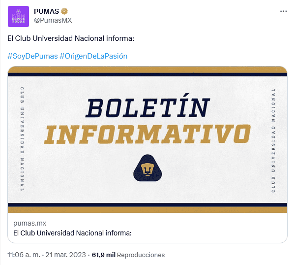 Después de semanas complicadas en Pumas, que terminaron con el fin del proceso de Rafael Puente del Río, la escuadra universitaria informó la llegada de su nuevo entrenador en el Clausura 2023 de la Liga MX. ¿Quién es?Mediante un comunicado en redes sociales, la escuadra auriazul anunció la llegada de Raúl Alpizar al banquillo.El exjugador universitario, quien era el responsable de las Fuerzas Básicas del club, tendrá ahora el objeto de mejorar lo realizado por el equipo en el Clausura 2023.Se espera que la modificación ayude en el ánimo del plantel, que tendrá dos semanas para buscar salir de la racha negativa que le permita calificar al repechaje de la Liga MX.OF