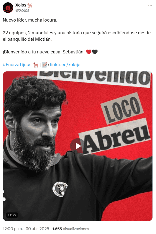 El equipo de Xolos de Tijuana hizo oficial este miércoles 30 de abril la llegada del uruguayo Sebastián "Loco" Abreu como nuevo director técnico, de cara al Torneo Apertura 2025. La directiva fronteriza dice en un comunicado que su apuesta es por la experiencia internacional del exdelantero, para liderar un nuevo proyecto que busca regresar al protagonismo en la Liga MX.Sebastián Abreu, conocido como el "Loco", nació el 17 de octubre de 1976 en Minas, Uruguay. Como futbolista, el sudamericano tuvo una de las carreras más extensas en la historia del deporte: jugó en 32 equipos alrededor del mundo, incluyendo conjuntos de México, Brasil, Argentina, España y hasta Israel. Además, fue parte fundamental de la selección de su país durante más de una década, participando en las Copas Mundiales de 2002 y 2010.Como entrenador, destaca el comunicado del equipo, inició como interino mientras aún jugaba, pero su debut oficial como técnico fue en 2022 con el Always Ready de Bolivia. Desde entonces, ha dirigido a clubes como Paysandú F.C. (Uruguay), Universidad César Vallejo (Perú) y recientemente a Dorados de Sinaloa, con quienes alcanzó los cuartos de final del Torneo Apertura 2024 en la Liga de Expansión MX.El vínculo del "Loco" Abreu con el futbol mexicano, dice el texto, no es nuevo. Como jugador dejó huella en equipos como Cruz Azul, América, Dorados, Rayados y San Luis, y Tecos en el futbol tapatío. Su conocimiento del entorno futbolístico nacional y su cercanía reciente con Xolos de Tijuana, tras dirigir partidos en el Estadio Caliente con Dorados, fueron factores importantes para que finalmente fuera el elegido como timonel de "La Jauría".Con esta incorporación, Xolos dice que busca un nuevo impulso rumbo al Torneo Apertura 2025, con la esperanza de volver a pelear en la parte alta de la tabla y reconectar con su afición.*Mantente al día con las noticias, únete a nuestro canal de WhatsAppOF