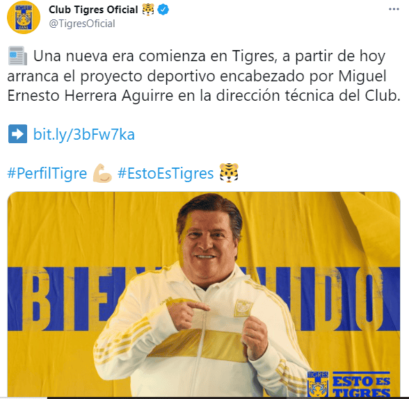 Miguel Herrera es nuevo entrenador de los Tigres y aunque todavía no es presentado en rueda de prensa o de manera habitual, el cuadro felino lo confirmó de una forma peculiar.Mediante un "live" en Instagram, el portero Nahuel Guzmán le dio la bienvenida al "Piojo", quien ya portaba una sudadera de los Tigres."Estoy muy contento de estar con ustedes. Yo sólo traigo la llave de trabajar y estoy seguro que vamos a ganar muchos torneos", dijo el estratega en charla con el "Patón".El guardameta argentino recordó los duelos que tuvieron cuando Miguel era estratega de las Águilas del América y dijo que "es un gustazo conocerte, hemos tenido algunos encuentros de todo tipo en la cancha, pero agradecerte por el trato", dijo entre risas el portero.Fiel a su estilo, Miguel Herrera sentenció que seguirá con la misma personalidad que lo caracteriza y hará que los Tigres "sigan cayendo mal a los rivales"."Vamos a seguir cayéndoles gordos a todos, ya verás. Seremos incomparables, imagínate la triple (Gignac, Nahuel y él), mencionó entre risas el "Piojo". AJ